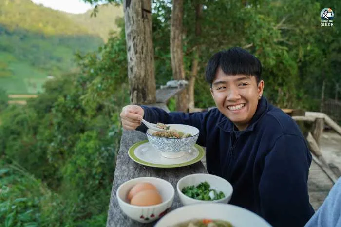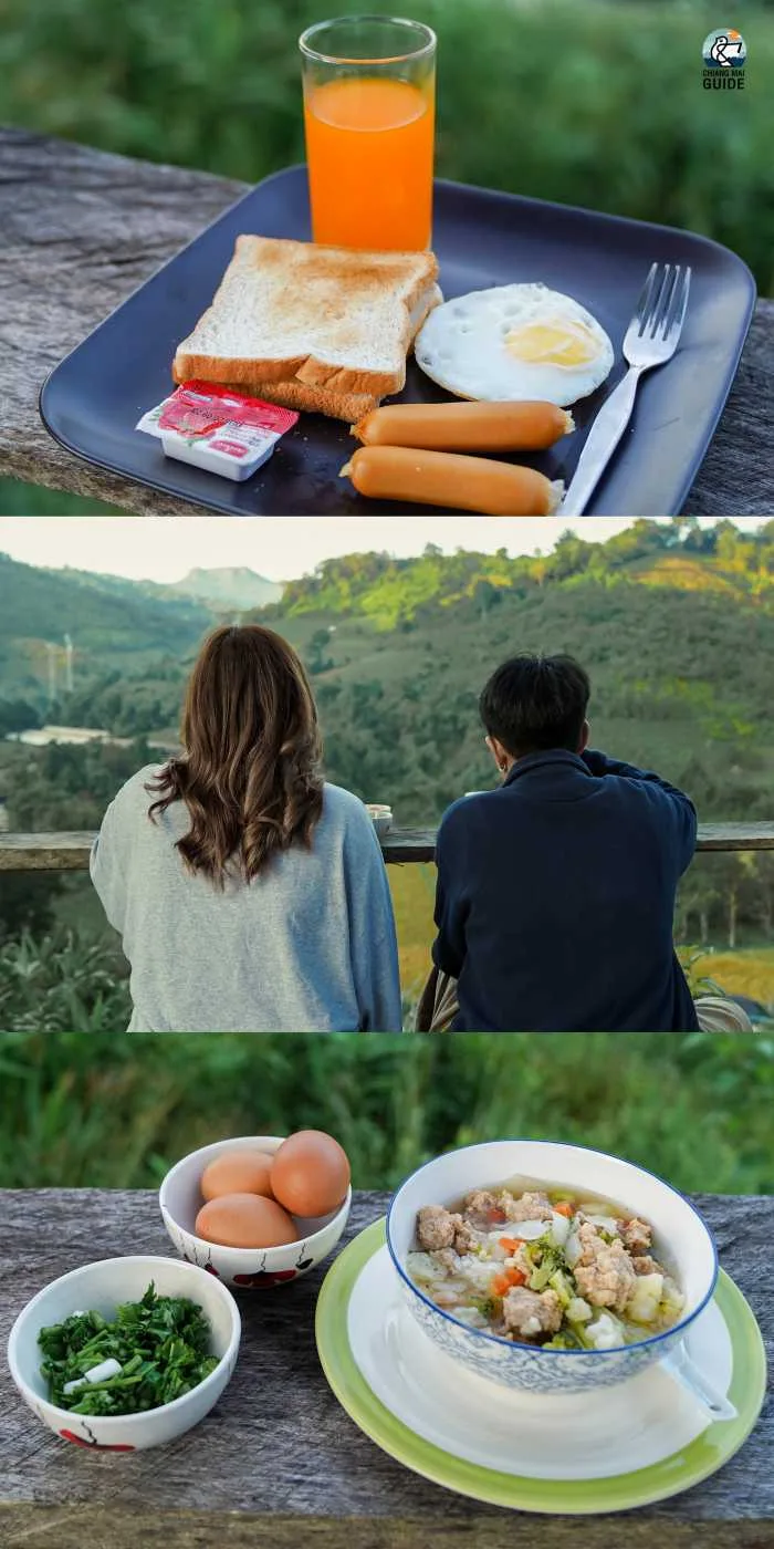ส่วนตอนกลางคืนคือหนาวมากก แอดไปช่วงต้นหนาวแต่อากาศก็เย็นมากแล้ว เตรียมเสื้ออุ่นๆไปกันด้วยน้า ตอนเช้าตื่นมาอากาศก็ดีมากก หมอกคือล้อมรอบที่พักเลย สวยมาก ตื่นมารับลมหนาว เจอแสงแดดกับหมอกยามเช้า พร้อมข้าวต้มร้อนๆ อย่างฟินนน