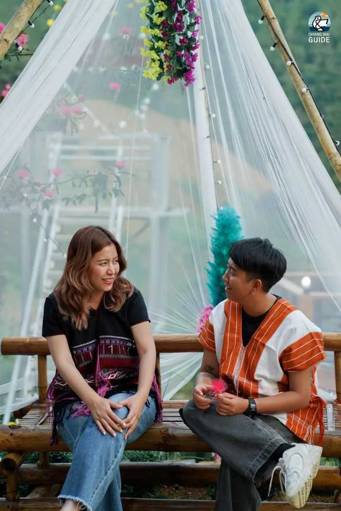 รอบนี้มาพร้อมกับโซนสวนดอกไม้กับโซนผิงไฟ แถมยังมีชุดชนเผ่าปกาเกอะญอไว้ใส่ถ่ายรูปเล่น ฟรีอีกด้วยใส่ถ่ายรูปแล้วน่ารักมาก ส่วนบรรยากาศแอดขอตะโกนบอกว่าดีมากกก!!! สวยมากกก! มากี่รอบแอดก็ยังชอบมากเหมือนเดิมเลย ราคาห้องพักเป็นกันเองสุดๆ เจ้าของยังคงใจดีดูแลเราราวกับว่าเป็นลูกเค้าเหมือนเดิม555