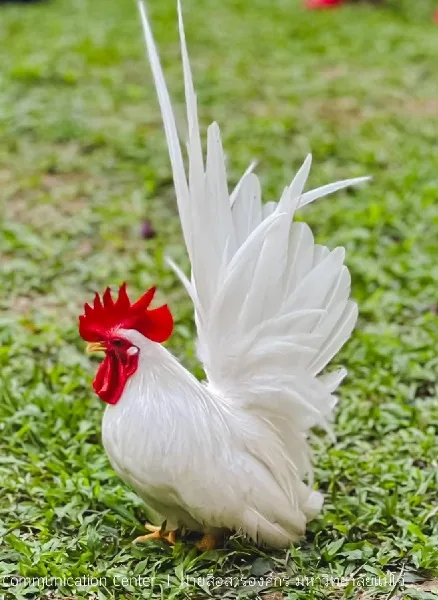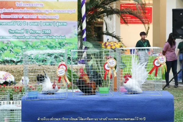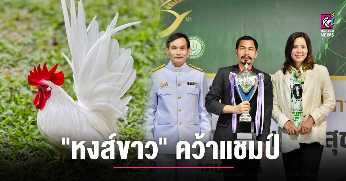 “หงส์ขาว” ไก่แจ้สวยงามเพศผู้ คว้าแชมป์ BEST OF THE BEST ครองถ้วยพระราชทาน การประกวดไก่แจ้สวยงาม งานเกษตรแม่โจ้ 90 ปี