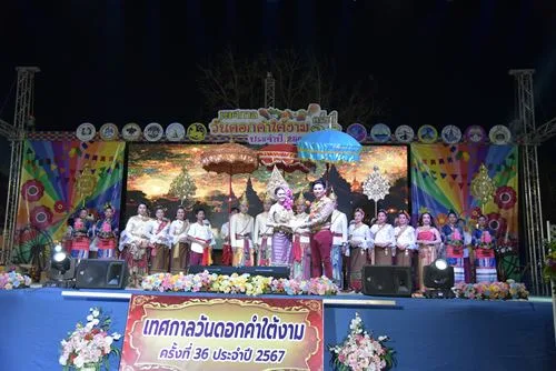 เมื่อวันที่ 15 ก.พ.67 ผู้สื่อข่าวรายงานว่า บริเวณลานหน้าที่ว่าการอำเภอดอกคำใต้ จังหวัดพะเยา ได้มีการจัดงานวันดอกคำใต้งาม ครั้งที่ 36 ประจำปี 67 ขึ้น โดยงานดังกล่าวได้จัดขึ้นระหว่างวันที่ 9 ก.พ. – 17 ก.พ.67 ซึ่งเมื่อช่วงวานเย็นที่ผ่านมา ก็ได้มีการจัดขบวนแห่กันอย่างยิ่งใหญ่และสวยงามทั้ง 11 อปท.และกลุ่มสตรี อำเภอดอกคำใต้ โดยมี ว่าที่ ร.ท.บำรุง คำไว นายอำเภอดอกคำใต้ พร้อมด้วยภริยาร่วมขบวนในครั้งนี้ด้วย ทั้งนี้ขบวนแห่ดังกล่าวได้มีการแต่งตัวย้อนยุคในชุดไอ้คร้าว – ทองกวาว พร้อมทั้งขบวนรถโบราณรวมทั้งการโชว์ความสามารถของนักเรียน โรงเรียนดอกคำใต้วิทยาคมและยังมีขบวนต่าง ๆ ที่ชูเอกลักษณ์ของแต่ละพื้นที่ให้ประชาชนทั่วไปที่มารอชม ได้เห็นความอลังการในครั้งนี้ด้วย หลังจากนั้นในช่วงพิธีเปิด โดยมีมีทาง นายจีรเดช ศรีวิราช ส.ส.พะเยา เขต 3 เดินทางมาเป็นประธานในการเปิดงานครั้งนี้ โดยก่อนจะมีพิธีเปิดงานนั้นได้มีการแสดงบนเวที 2 ชุด และหลังจากนั้นทางว่าที่ ร.ท.บำรุง คำไว นายอำเภอดอกคำใต้ พร้อมทั้งส่วนราชการได้ให้การต้อนรับ และทางนายอำเภอดอกคำใต้ได้ กล่าวรายงานวัตถุประสงค์ของการจัดงาน