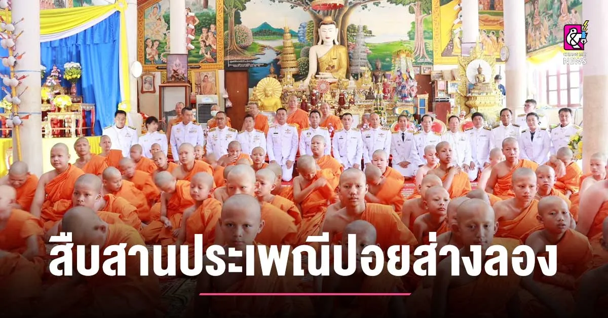 สำหรับประเพณีปอยส่างลอง (ไทใหญ่) หรือ งานบวชลูกแก้ว เพื่อทำการบรรพชาเป็นสามเณรในพระพุทธศาสนา โดยจะพบเห็นการจัดปอยส่างลองกันมากที่จังหวัดแม่ฮ่องสอน โดยเฉพาะในเขตอำเภอเมือง อำเภอขุนยวม อำเภอแม่สะเรียง และอำเภอปาย ผู้คนส่วนใหญ่สืบเชื้อสายมาจากไทใหญ่ ซึ่งก็ได้ร่วมกันสืบทอดงานประเพณีนี้มาเป็นเวลาช้านาน ซึ่งก็ได้มีการจัดงานอย่างยิ่งใหญ่ทุก ๆ ปี เนื่องจากเป็นประเพณีที่สำคัญทางศาสนา และเป็นเอกลักษณ์ของจังหวัดแม่ฮ่องสอนจนกระทั่งในช่วงสงครามโลกครั้งที่ 2 ปี พ.ศ. 2482 -2488 ในระหว่างนั้นประเทศไทยได้ประสบปัญหาทางด้านต่างๆ ทั้งการเมือง เศรษฐกิจ และสังคม ทำให้ประเพณีปอยส่างลองถูกงดและเลิกไป จนกระทั่งเมื่อปี พ.ศ. 2525 อันเป็นปีฉลองกรุงรัตนโกสินทร์ครบ 200 ปี ก็ได้มีการฟื้นฟูและจัดงานประเพณีปอยส่างลองขึ้นทุกๆปีจนถึงปัจจุบัน