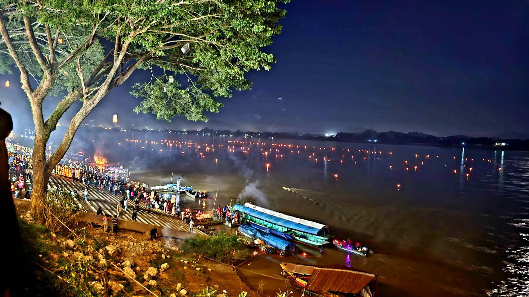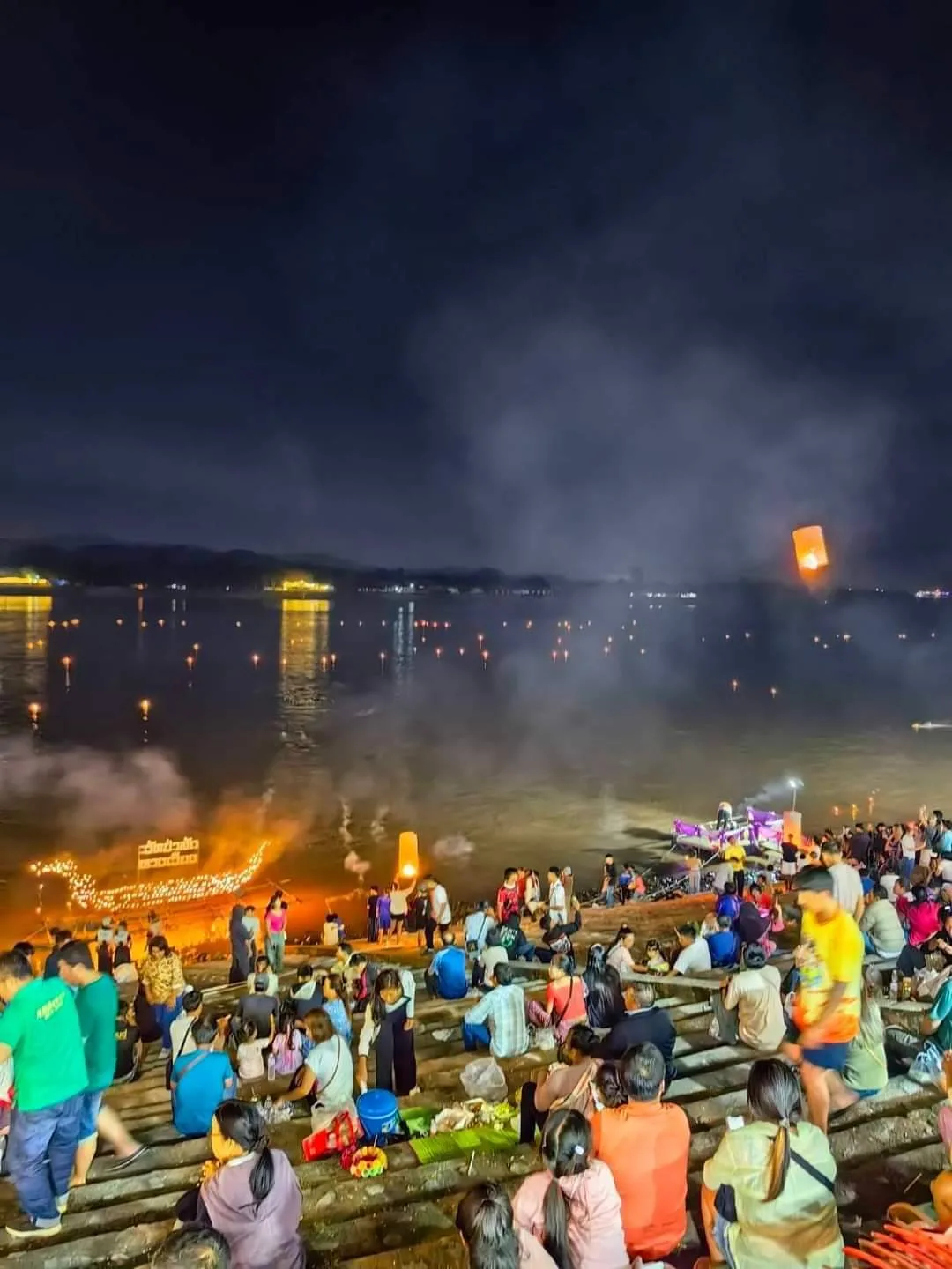 ค่ำคืนวันเพ็ญเดือน 12 ที่บริเวณลานเอนกประสงค์ริมโขง หรือที่คนแถวนั้นเรียกกันว่า กาดใบตอง ซึ่งตั้งอยู่บริเวณหน้าที่ว่าการอำเภอเชียงแสน จ.เชียงราย บรรยากาศของงานเทศกาลลอยกระทงปีนี้เป็นไปอย่างคึกคัก ประชาชนและนักท่องเที่ยวหลายพันคน ได้พร้อมใจกันไปร่วมกิจกรรมต่างๆเนื่องในวันลอยกระทงซึ่งทางอำเภอเชียงแสนได้ร่วมกับเทศบาลตำบลเวียงจัดขึ้น ประชาชนและนักท่องเที่ยวจำนวนมากพากันไปนั่งชมความงามของสายน้ำโขงนที ที่ค่ำคืนนี้ได้พัดพาเอากระทงสายไหลมาตามสายน้ำ กลายเป็นภาพที่สวยงามสร้างความประทับใจได้เป็นอย่างดีให้กับผู้ที่ได้ชม หลายคนจุดโคมลอยขึ้นสู่ท้องฟ้าเพื่อถวายเป็นพุทธบูชา และที่จะขาดไม่ได้คือการลอยกระทง ซึ่งตามความเชื่อแล้วจะถือว่าเป็นการขอขมาพระแม่คงคานั่นเอง ในงานยังมีการประกวดการประดิษฐ์กระทงด้วย ซึ่งผลงานที่ได้รับรางวัลต้องบอกว่าวิจิตรงดงามอย่างมาก