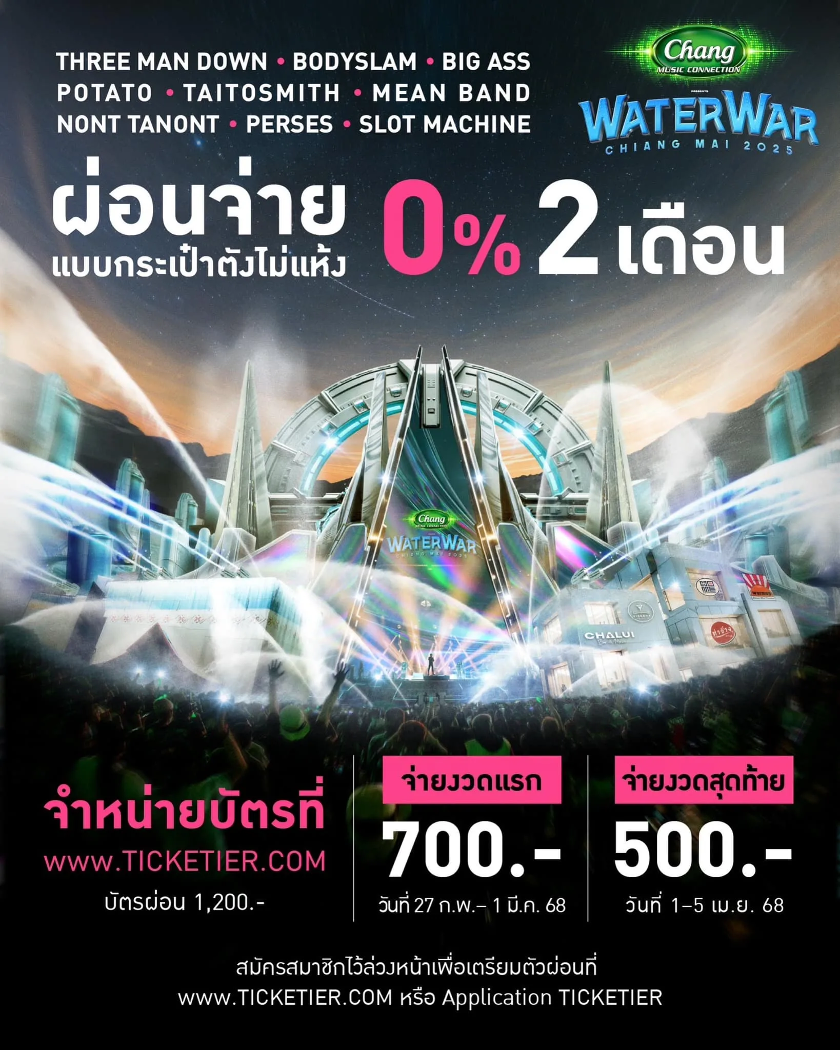 • บัตร EARLY SPLASH แบบผ่อนได้สบาย ๆ 2 งวด ซื้อบัตรได้ที่ TICKETIER Application หรือ www.TICKETIER.com