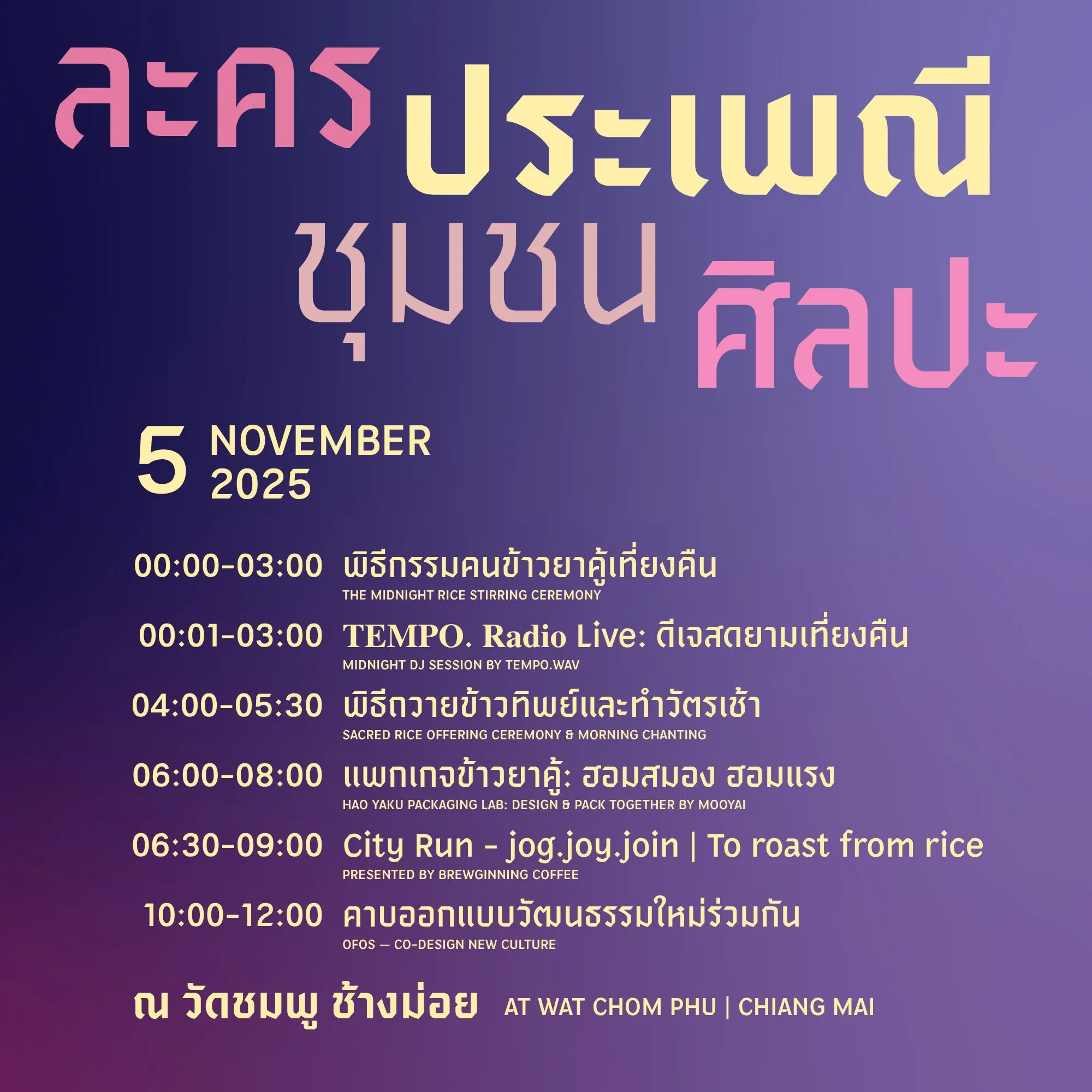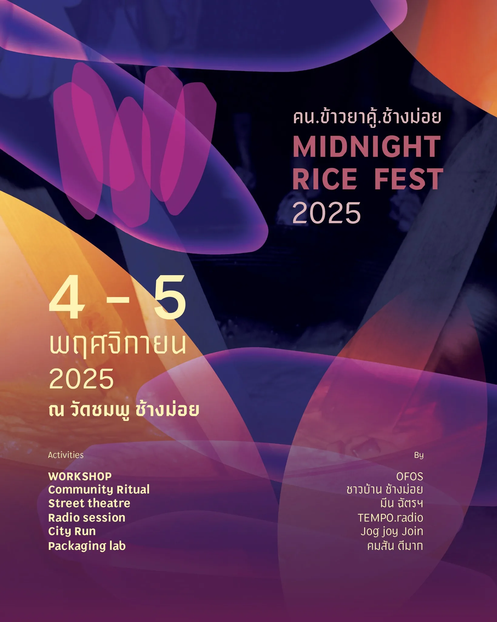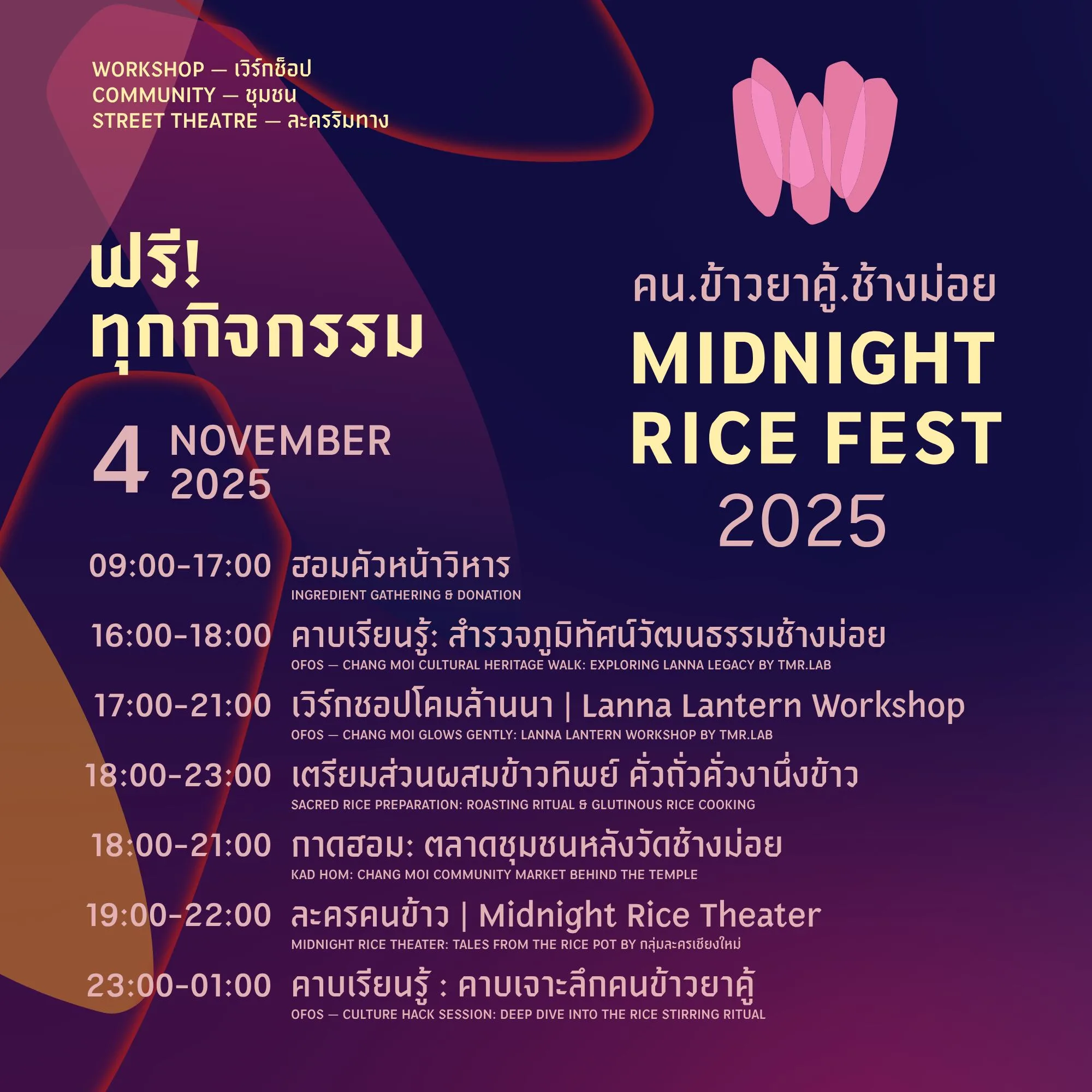 Community Ritual — ร่วมพิธีจริงกับชาวชุมชนช้างม่อย ผู้สืบทอดประเพณีนี้มาหลายสิบปี พร้อมพบปะคนรุ่นใหม่ที่มาช่วยกัน “คนข้าว” ให้โลกเห็น