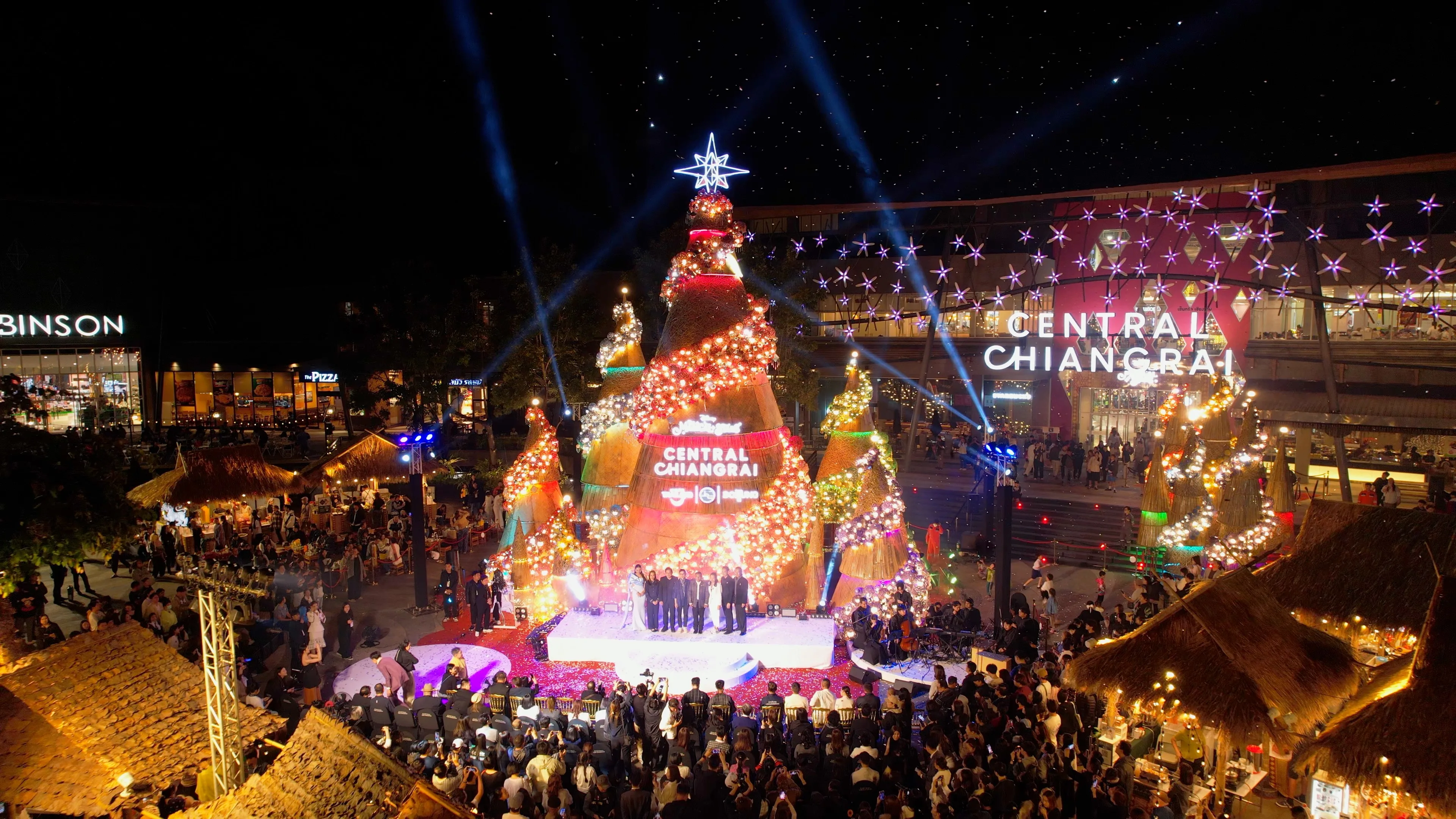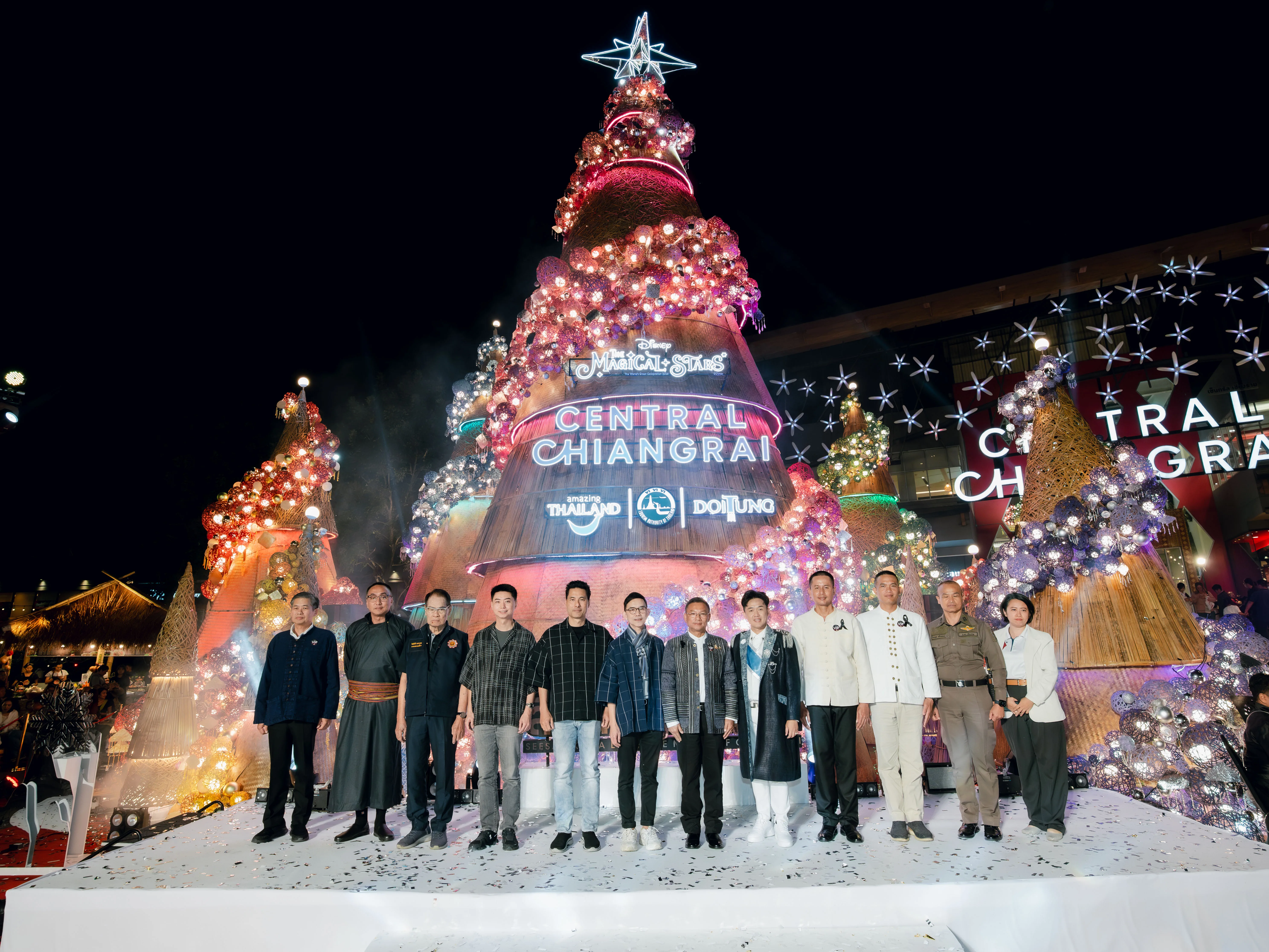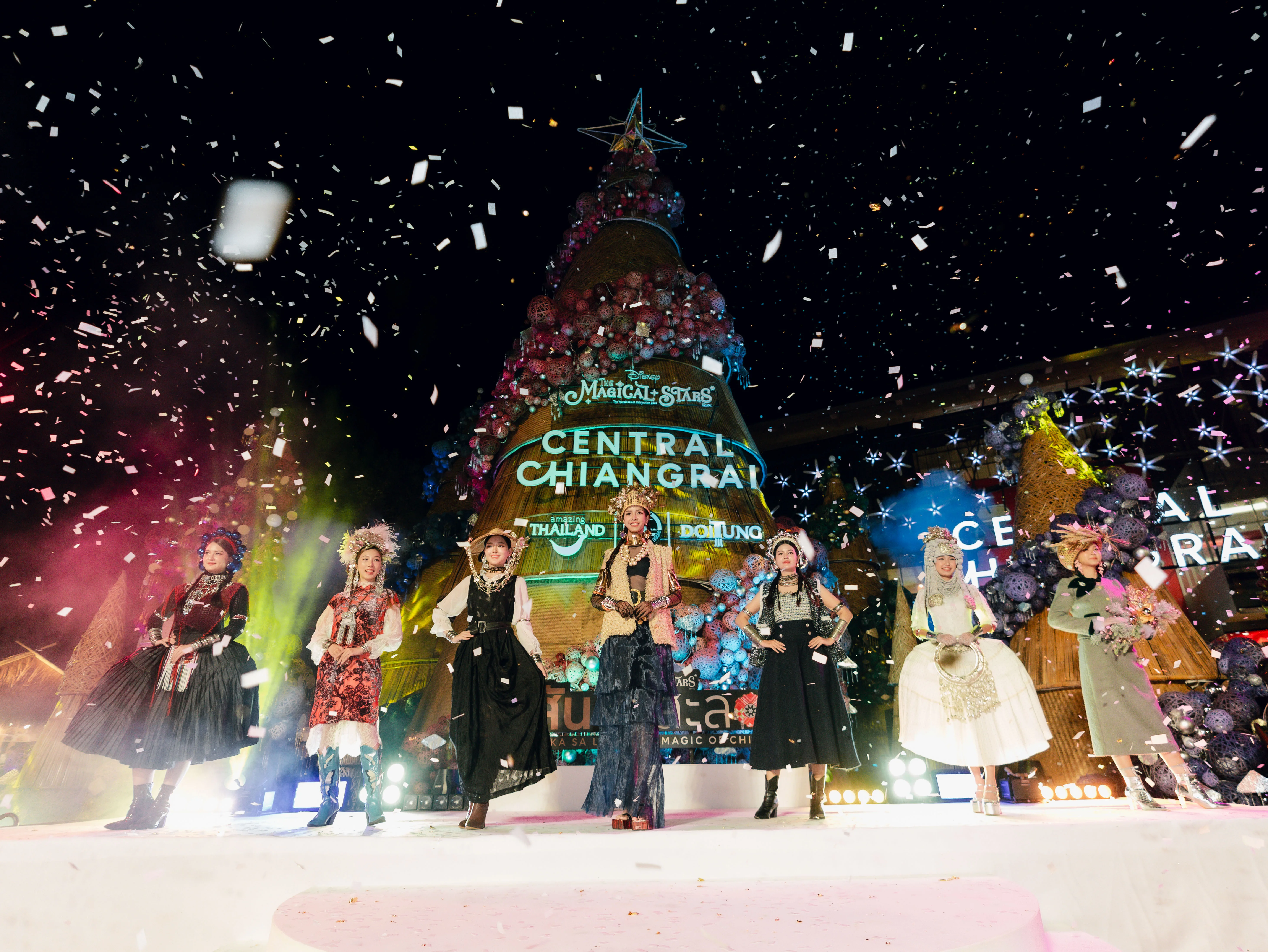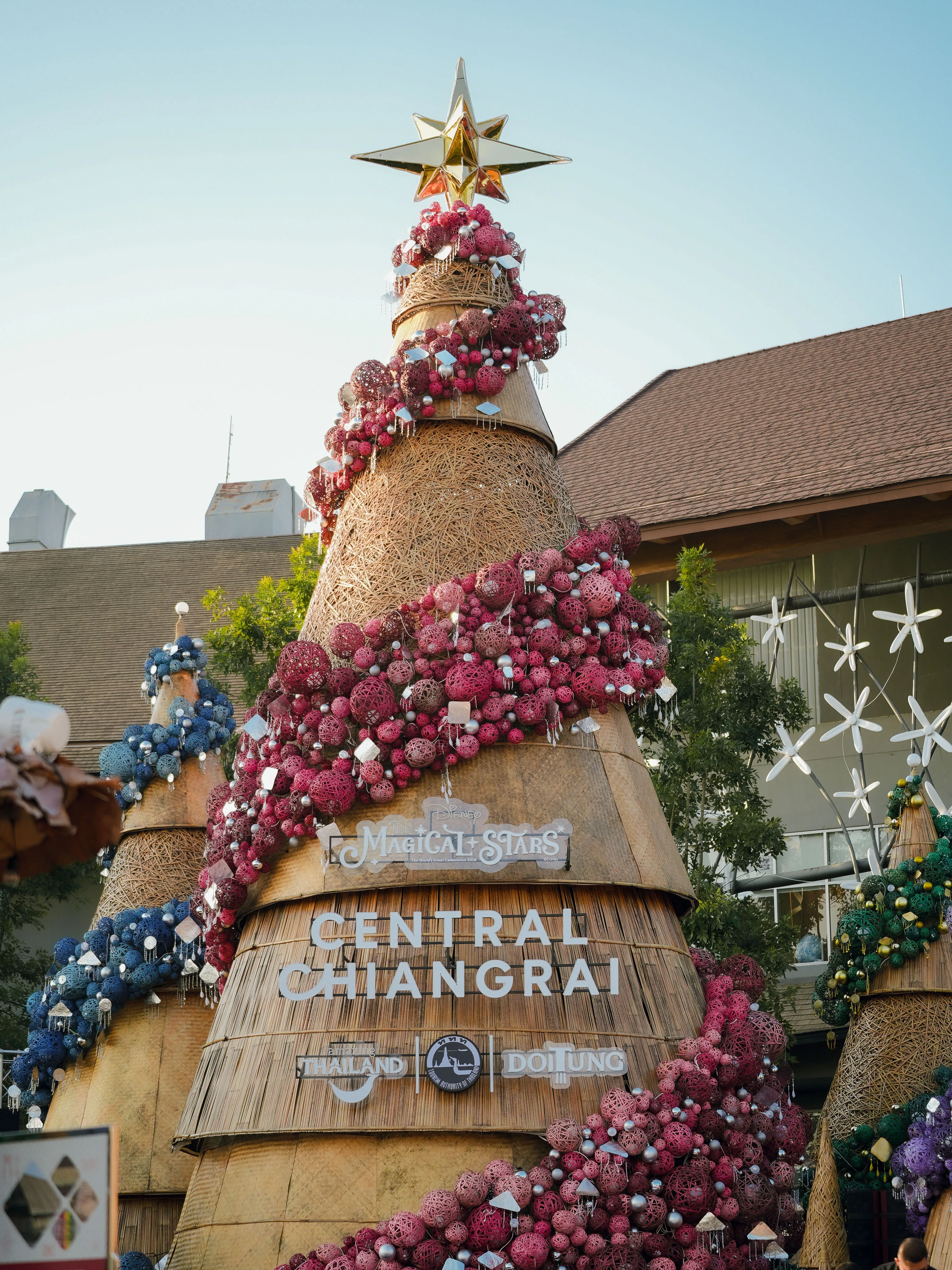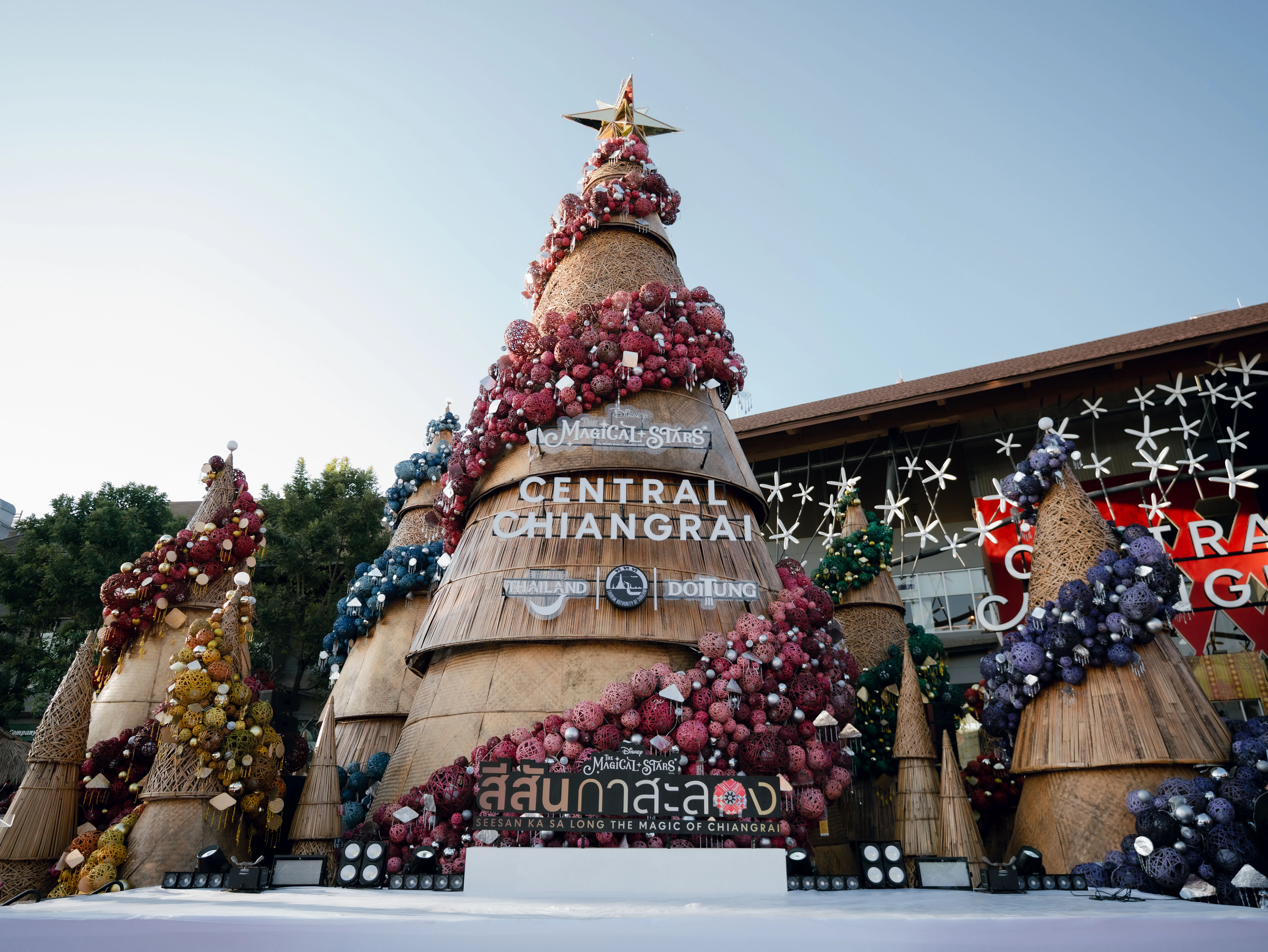 ปีนี้ “ต้นคริสต์มาสหมอกพันวา” ทั้ง 7 ต้น ถูกรังสรรค์ด้วยงานคราฟต์จากภูมิปัญญาชนเผ่าล้านนา–ดอยตุง สะท้อนเสน่ห์ 4 ชนเผ่า ผ่านลวดลายไม้ไผ่สานย้อมสีธรรมชาติภายใต้คอนเซ็ปต์ ‘The Magic of Chiang Rai’