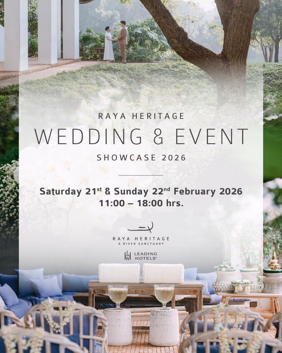 โรงแรมรายาเฮอริเทจจัดงาน Wedding & Event Showcase 2026 เพื่อต้อนรับคู่บ่าวสาว และทุกท่านที่กําลังมองหาสถานที่จัดงานแต่งงานในบรรยากาศอบอุ่นประทับใจ ตลอดจนการจัดเลี้ยงหรือจัดประชุมอย่างมีสไตล์