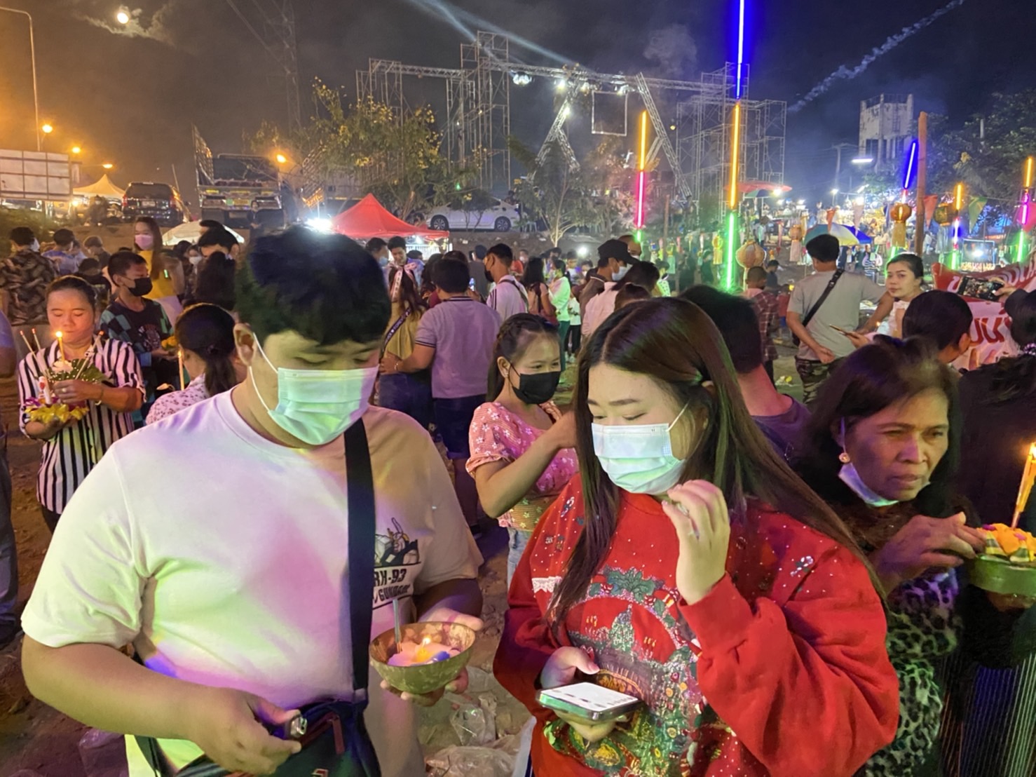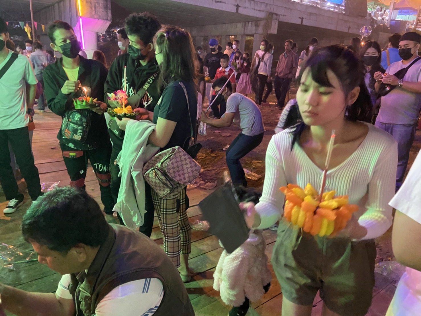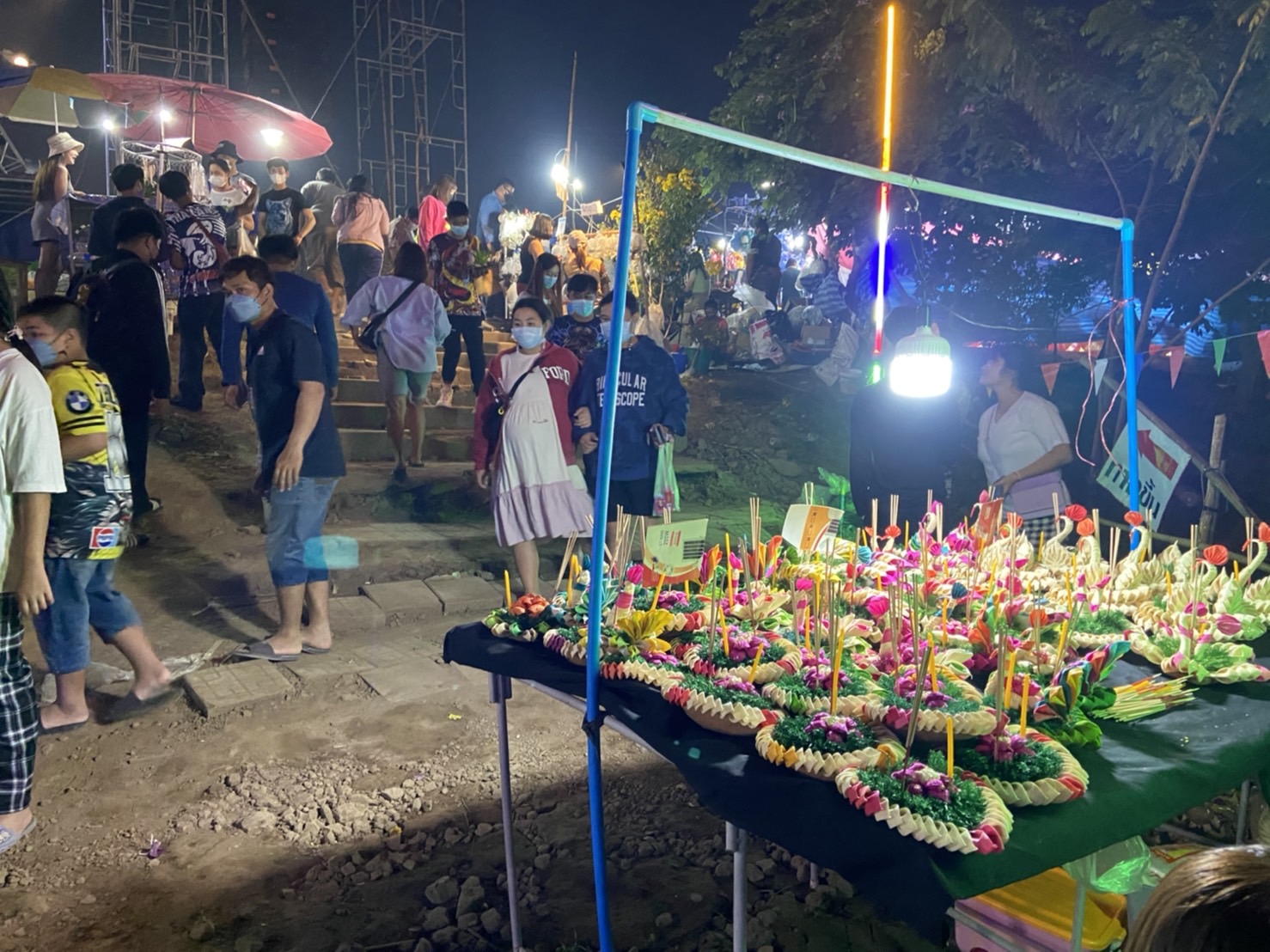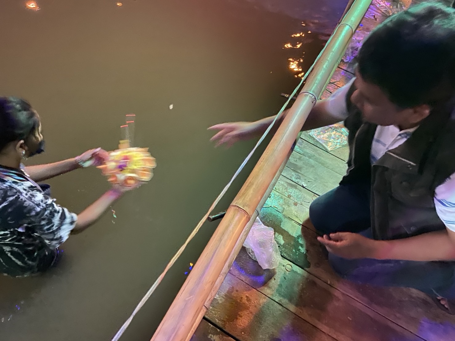 ตั้งแต่ช่วงค่ำวันที่ 9 พ.ย. 2565 บรรยากาศประเพณียี่เป็ง ที่บริเวณท่าน้ำปิงบ้านป่างิ้ว ต.ท่าวังตาล อ.สารภี อีกฝั่งพื้น ต.ป่าแดด อ.เมืองเชียงใหม่ คึกคักไปด้วยผู้มาเที่ยวและลอยกระทง มีการจุดประทัด-พลุ-ดอกไม้ไฟเสียงดังสนั่น บวกกับมีการเล่นดนตรีสดที้งสองฝั่งแม่น้ำปิง