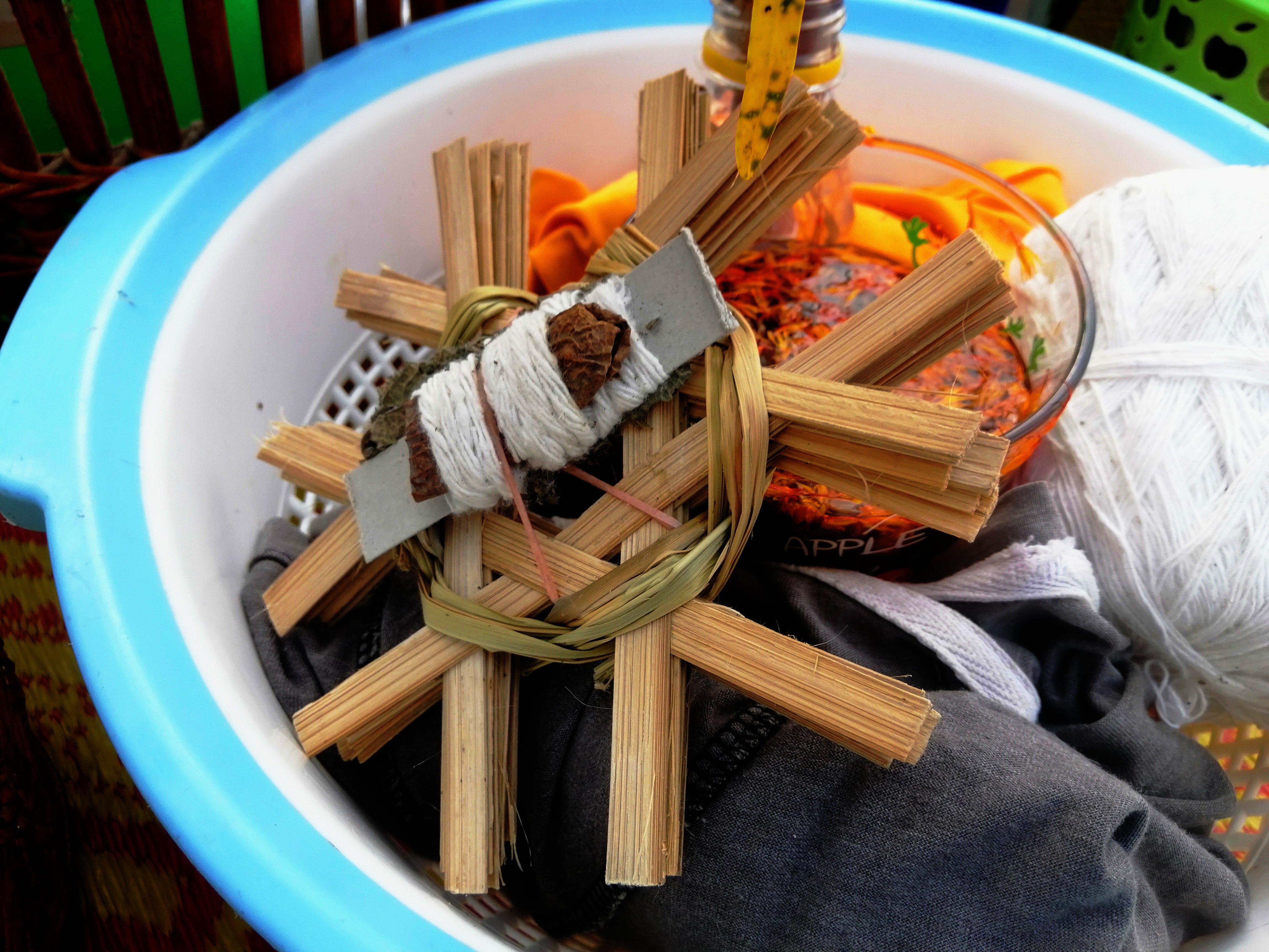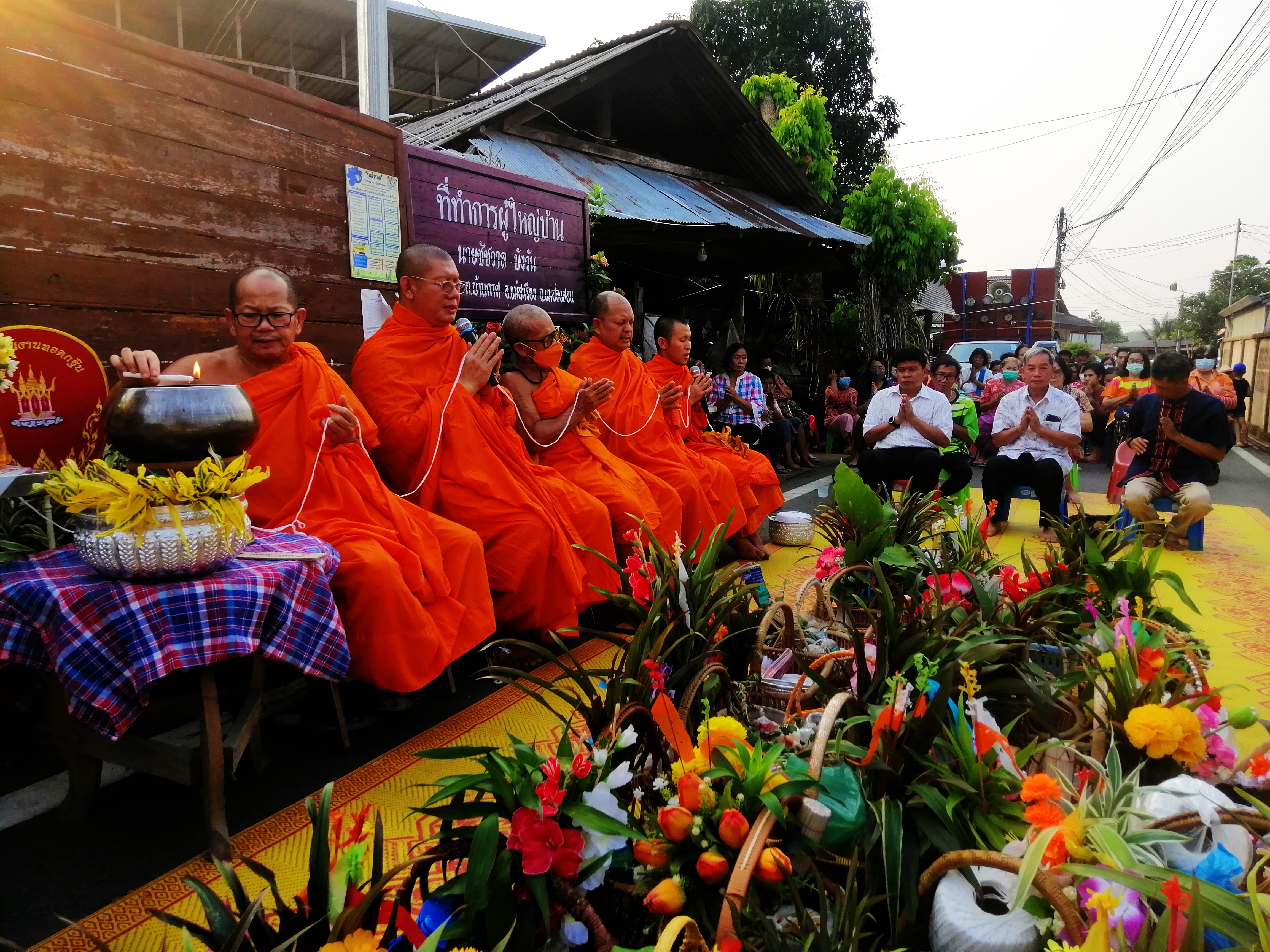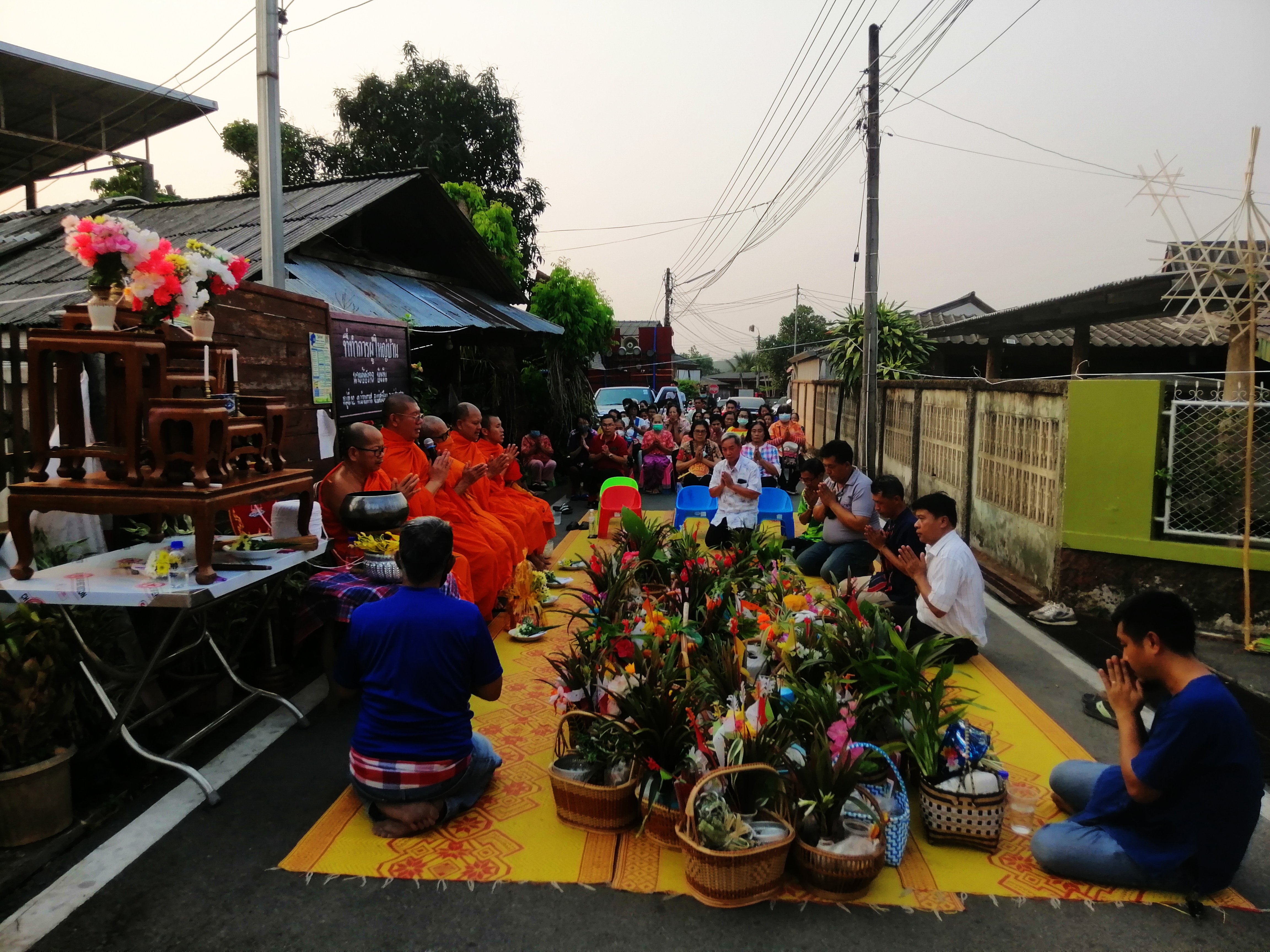 ชาวบ้านร่วมพิธีสูตรกอง สูตรถอน สะเดาะเคราะห์หมู่บ้าน ปัดเป่าสิ่งชั่วร้ายอัปมงคล โดยใช้ตะแหลว ใบไม้มงคลในการขับไล่ปัดเป่าสิ่งชั่วร้าย