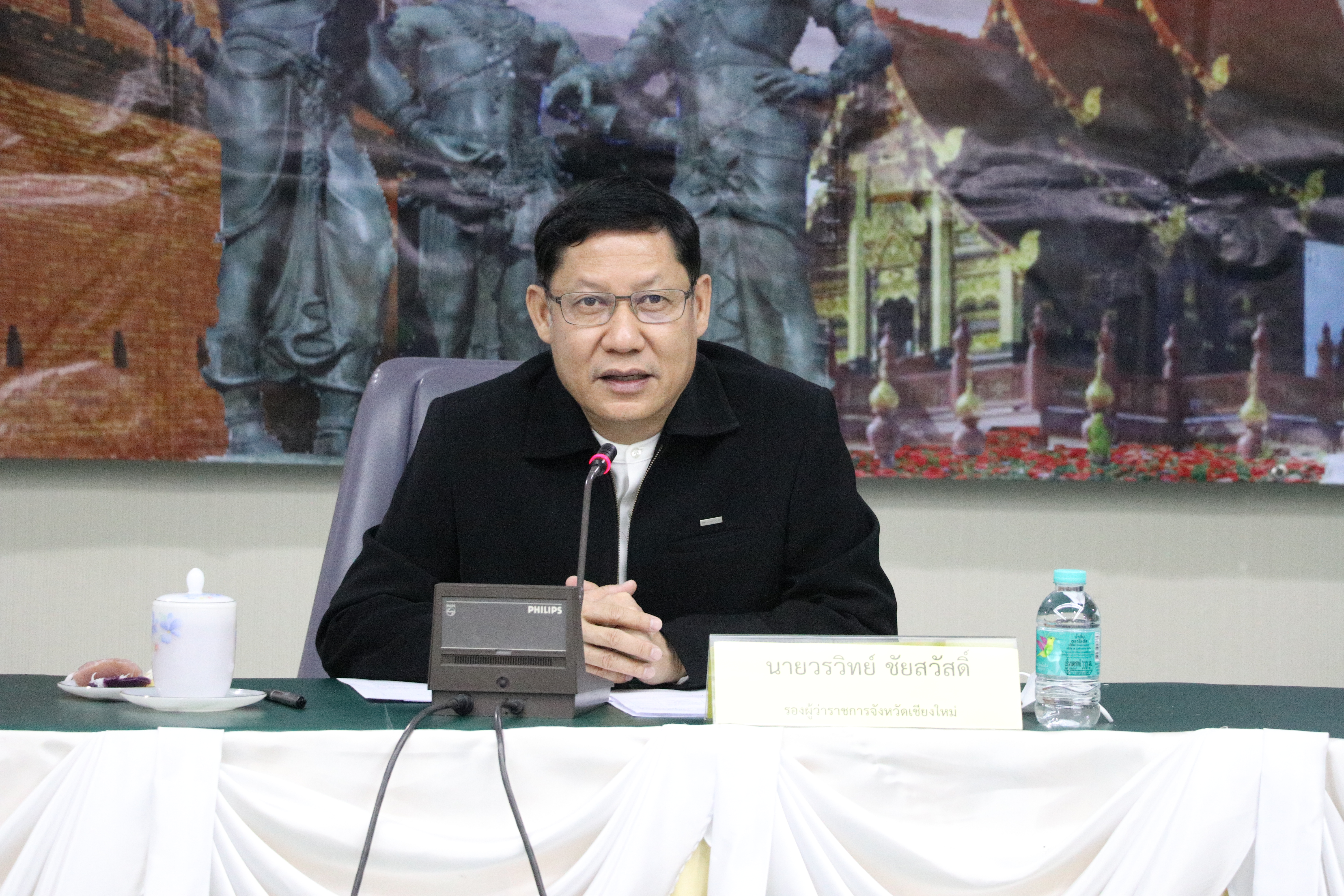 วันอังคารที่ 16 พฤษภาคม 2566 ณ ห้องประชุม 4 ชั้น 4 อาคารอำนวยการ ศาลากลางจังหวัดเชียงใหม่ นายนิรัตน์ พงษ์สิทธิถาวร ผู้ว่าราชการจังหวัดเชียงใหม่ มอบหมายให้ นายวรวิทย์ ชัยสวัสดิ์ รองผู้ว่าราชการจังหวัดเชียงใหม่ เป็นประธานการแถลงข่าวสื่อมวลชนประจำสัปดาห์จังหวัดเชียงใหม่ โดยมีพระครูปริยัติเจติยานุรักษ์, ผศ.ดร. ผู้ช่วยเจ้าอาวาสวัดพระธาตุดอยสุเทพราชวรวิหาร ผู้อำนวยการสำนักวิชาการ มหาวิทยาลัยมหาจุฬาลงกรณราชวิทยาลัย วิทยาเขตเชียงใหม่