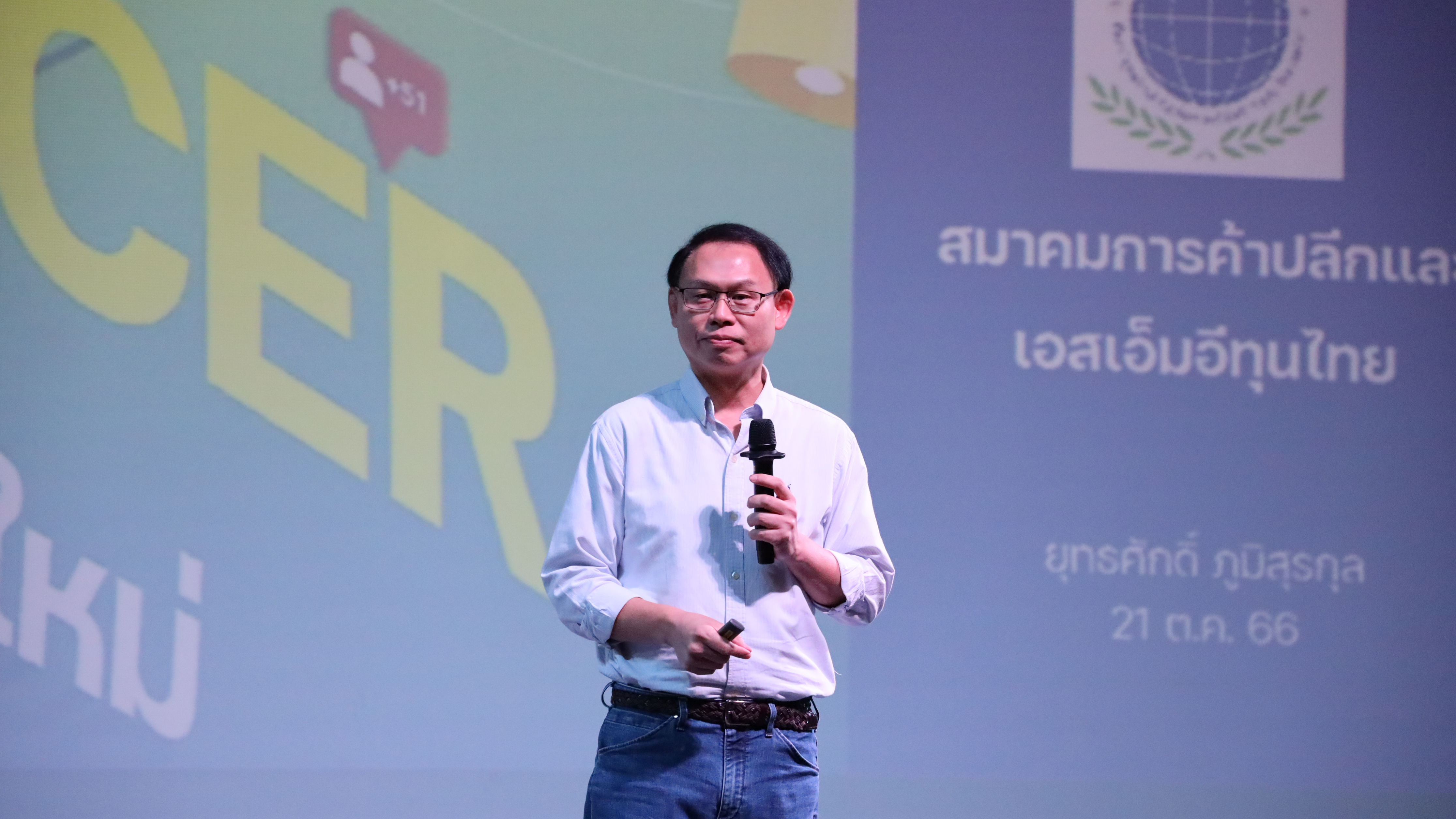 และร่วมพูดคุยกับตัวแทน SME และ Influencer ถึงจุดเริ่มต้นของการสร้างแบรนด์หรือสร้างตัวตน พร้อมคำแนะนำสำหรับเหล่า SME ที่ต้องปรับตัวมาสร้างตัวตนแบบ Personal Branding กับคุณนพวิทย์ จันทิพย์วงษ์ (เอก) ทายาทรุ่นที่ 2 ของ “เต่าเหยียบโลก” แบรนด์ระดับตำนานที่ครองใจคนไทย กับธุรกิจแป้งผงระงับกลิ่นกายธรรมชาติ ที่ทำมานานกว่า 15 ปี และ Influencer ช่องดัง คุณสิทธิ์เดช บรรมณี (หนุ่ม) หรือ คุณม้าม่วง จากช่อง “TikTok ม้าม่วง” ที่เรารู้จักกันเป็นอย่างดี มีผู้ติดตามกว่า 3 ล้านคน