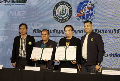 ผู้ช่วยศาสตราจารย์ ดร.ณัฐวุฒิ ดุษฎี รองอธิการบดีมหาวิทยาลัยแม่โจ้ มหาวิทยาลัย กล่าวว่า กิจกรรม “Maejo Innovation Day 2023” ประกอบไปด้วย พิธีลงนามสัญญาอนุญาตให้ใช้สิทธิ (Licesing) กิจกรรมมอบรางวัลด้านทรัพย์สินทางปัญญา (IP Awards) และ กิจกรรมนำเสนอผลงานวิจัยที่มีความพร้อมออกสู่เชิงพาณิชย์ (Pitching) เพื่อเป็นการประชาสัมพันธ์ ซึ่งเป็นส่วนประกอบของการสื่อสารทางการตลาดที่มีความสำคัญอย่างหนึ่ง ที่นอกเหนือจากการโฆษณา และเป็นการส่งเสริมการขายให้กับภาคเอกชนที่ได้รับการอนุญาตให้ใช้สิทธิในผลงานวิจัยนั้นๆ โดยการอนุญาตใช้สิทธิในผลงานวิจัยเพื่อใช้ประโยชน์เชิงพาณิชย์ ถือเป็นจุดเริ่มต้นที่ดีของกระบวนการถ่ายทอดเทคโนโลยี (Technology Transfer) ระหว่างมหาวิทยาลัยและภาคธุรกิจ โดยความรู้และงานวิจัยทางวิทยาศาสตร์ เทคโนโลยี และนวัตกรรม ถือเป็นหนึ่งในกลไกสำคัญ ที่จะขับเคลื่อนประเทศให้มีขีดความสามารถในการแข่งขันกับนานาประเทศเพิ่มมากขึ้น ช่วยให้เศรษฐกิจเจริญเติบโต อย่างมีเสถียรภาพ ยั่งยืน มีการกระจายรายได้ไปสู่สังคม และมีภูมิคุ้มกันจากกระแสโลกาภิวัฒน์ การวิจัยและพัฒนาเพื่อสร้างและต่อยอดองค์ความรู้ให้มีความเท่าทันต่อโลกสมัยใหม่จึงเป็นสิ่งที่ประเทศและสถาบันการศึกษาควรให้ความสำคัญอย่างยิ่ง