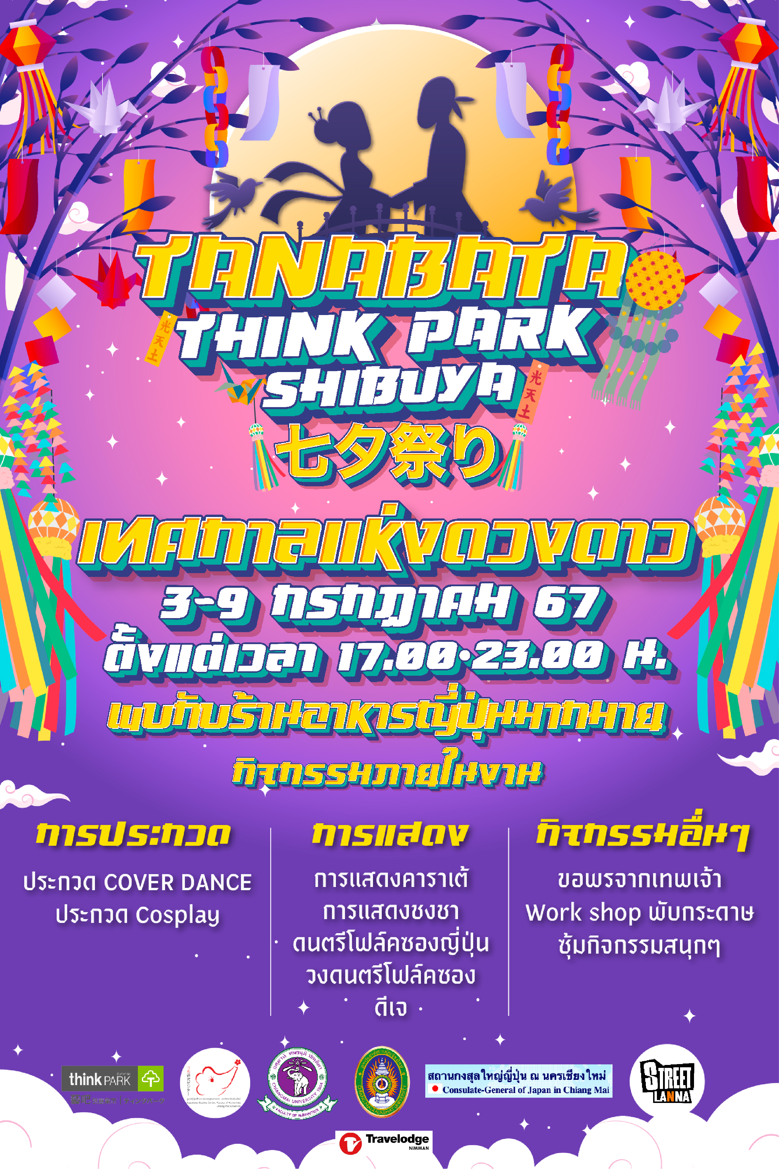 วันที่ 3-9 กรกฏาคม 2567 นี้ โครงการ ธิงค์พาร์ค ชิบูย่า เชียงใหม่ ร่วมกับ กงศุลใหญ่ญี่ปุ่น ณ นครเชียงใหม่ และ สาขาวิชาภาษญี่ปุ่น มหาวิทยาลัยราชภัฏเชียงใหม่ ร่วมจัดงานทานาบาตะ ประจำปี 2567 เพื่อส่งเสริมและเผยแพร่วัฒนธรรมญี่ปุ่น “เทศกาลแห่งดวงดาว” ตามความเชื่อของชาวญี่ปุ่น วันที่ 7 เดือน 7 ของทุกปี