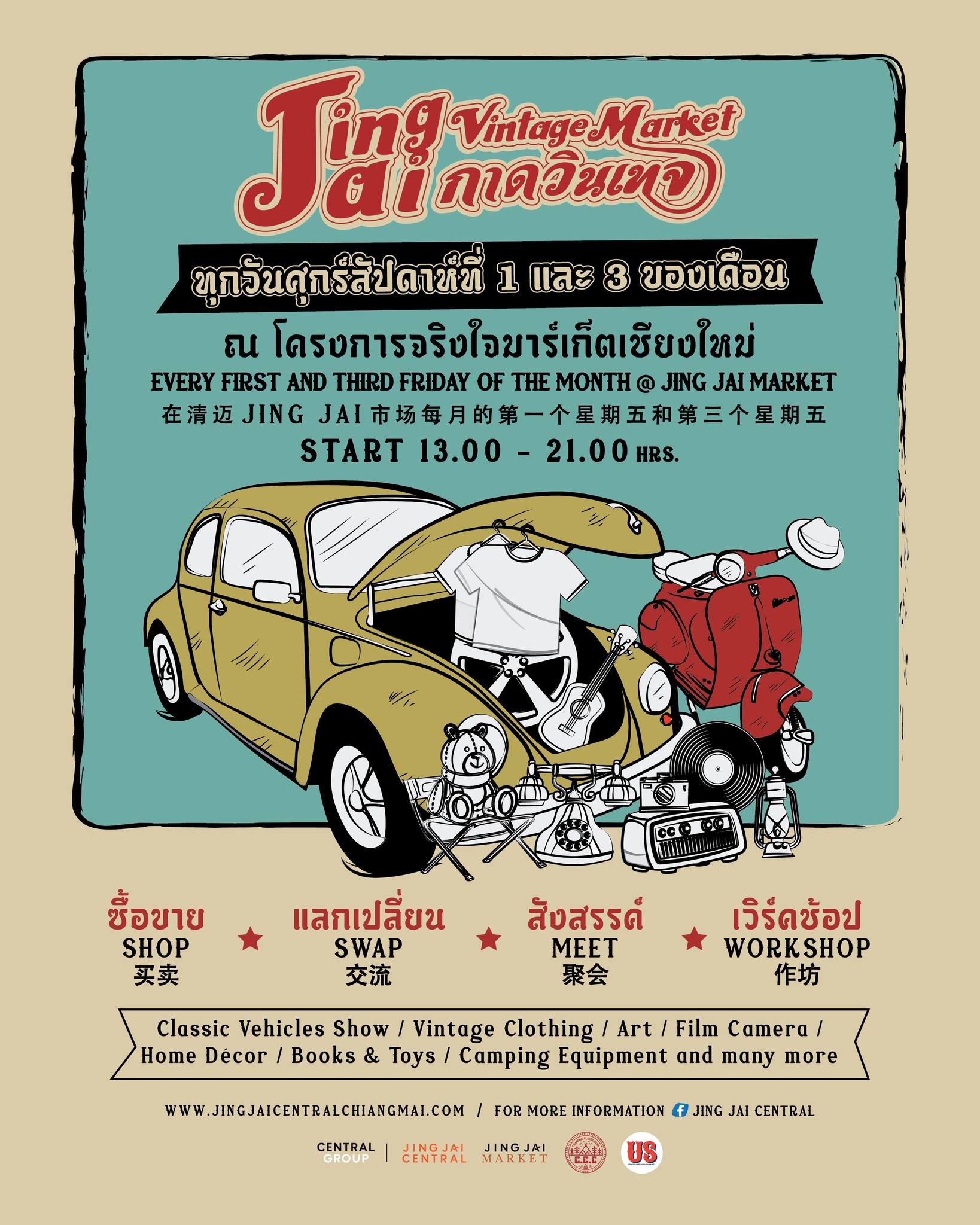 Don’t miss! Jing Jai Vintage Market every first and third Friday of the month!! at Jing Jai Market Chiang Mai. Enjoy a Free