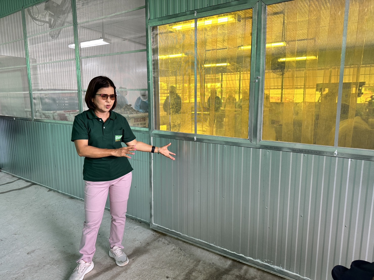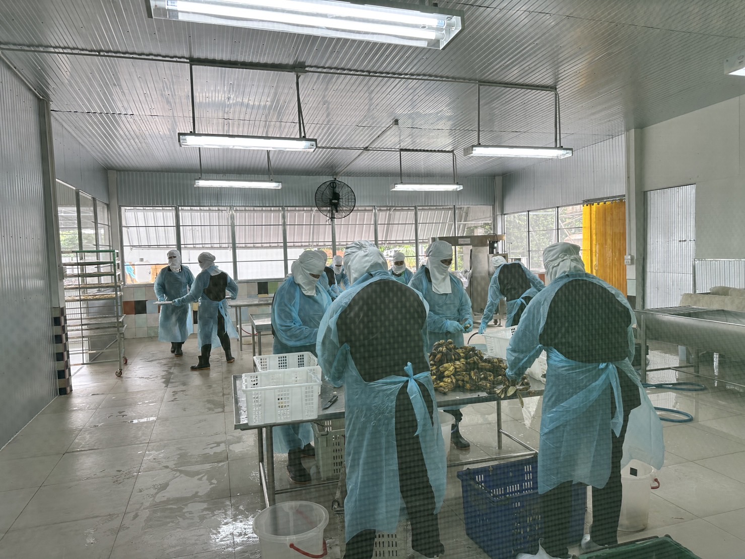 ป้าแดง เล่าเพิ่มเติมว่า “กล้วยหนึบ” ที่ทางกลุ่มวิสาหกิจชุมชนฯผลิตมาจากกล้วยน้ำว้าสายพันธุ์มะลิอ่อง ซึ่งเป็นกล้วยสายพันธุ์ที่ปลูกมากใน จ.เชียงใหม่ เมื่อนำมาแปรรูปจะมีความเหนียวนุ่มและมีกลิ่นหอมมากกว่าสายพันธุ์อื่น โดยทางกลุ่มจะรับซื้อกล้วยจากชุมชนในท้องถิ่นและพื้นที่ต่างๆ บนดอยของ จ.เชียงใหม่ และ จ.เชียงราย ในราคา 12-20 บาทต่อกิโลกรัม โดยทางกลุ่มจะรับซื้อกล้วยสดในปริมาณ 4,000 กิโลกรัมต่อครั้ง เพื่อนำมาแปรรูปผ่านกระบวนการอบแห้ง 6 ชั่วโมง จะได้ปริมาณกล้วยหนึบประมาณ 400 กิโลกรัม