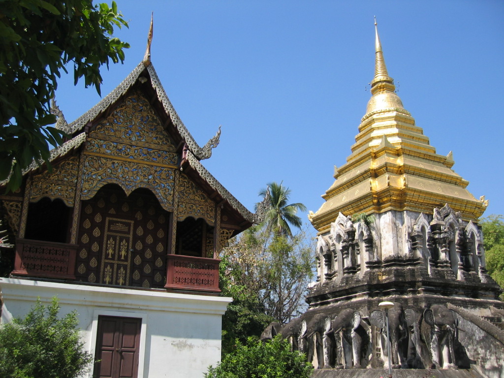 เมื่อครั้งที่พระยามังรายมหาราช ปฐมกษัตริย์แห่งล้านนาไทยได้ทรงสร้างเมืองเชียงใหม่ขึ้นเมื่อปี พ.ศ.1839 นั้น พระองค์ทรงโปรดให้สร้างวัดขึ้นเป็นวัดแรกแห่งนครเชียงใหม่ ก็คือ วัดเชียงมั่น ซึ่งเป็นวัดที่มีการผสมผสานศิลปแบบเชียงแสน ซึ่งได้รับอิทธิพลมาจากลังกาเข้ากับศิลปะแบบล้านนา งานศิลปเชียงแสนเข้ามาแพร่หลายอยู่ในอาณาจักรล้านนาไทยราวปี พ.ศ.1880 โดยพระเจ้าปักกรมพาหุมหาราช โดยสมัยนั้นสถาปัตยกรรมต่าง ๆ ในเชียงใหม่สร้างขึ้นตามอิทธิพลแบบลังกา สังเกตได้จากการทำฐานสถูปเจดีย์เป็นฐานสูงมีลาดบัวซ้อนกันหลาย ๆ ชั้น ทั้งที่มีซุ้มและไม่มีซุ้ม บริเวณซุ้มเหล่านั้นมักจะทำประตูทางเข้า ประตูออก หรือทำเป็นซุ้มสำหรับตั้งพระพุทธรูปก็มี เช่น เจดีย์ของวัดเจดีย์หลวง วัดพระธาตุดอยสุเทพ และวัดเชียงมั่น เป็นต้น