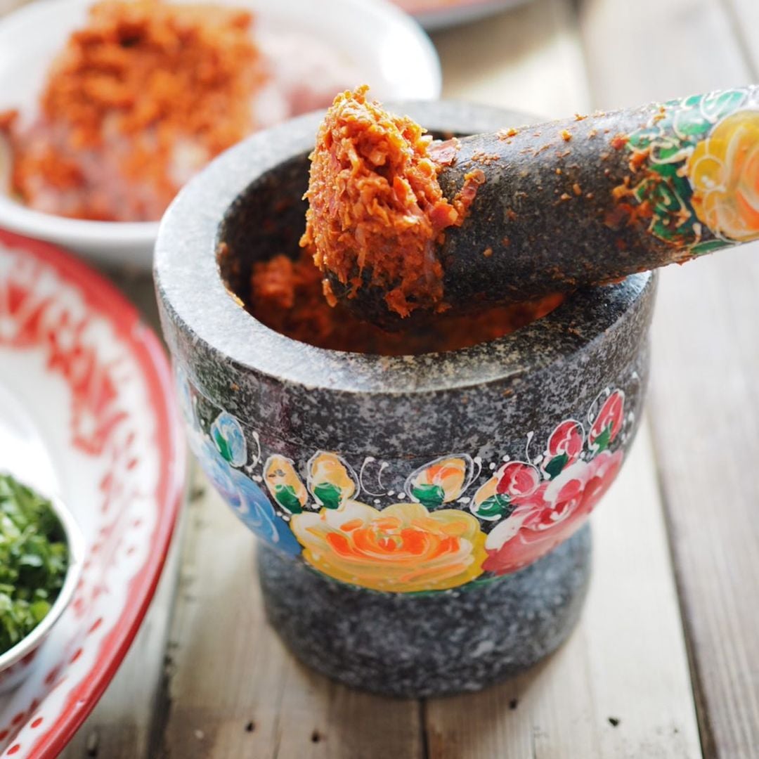 ในส่วนวิธีทำไส้อั่ว อย่างแรกเรามาตำน้ำพริกแกงกันก่อน ใส่พริกลงไปตำกับเกลือ ใส่ส่วนผสมที่แข็งลงไปตำ ได้แก่ ข่าตะไคร้ รากผักชี กระเทียม หอมแดง ผิวมะกรูด กะปิ ขมิ้น และลูกผักชีกับยี่หร่าคั่ว ตำละเอียดตามชอบ หากใครไม่มีเวลาตำน้ำพริกแกงเอง สามารถใช้น้ำพริกแกงเผ็ดแทนได้ แต่ขอให้ตำตะไคร้และข่ามากขึ้นกว่าปกติ ใส่ขมิ้นตำด้วย แค่นี้ก็จะได้พริกแกงที่หอมเครื่องเทศอย่างแน่นอน