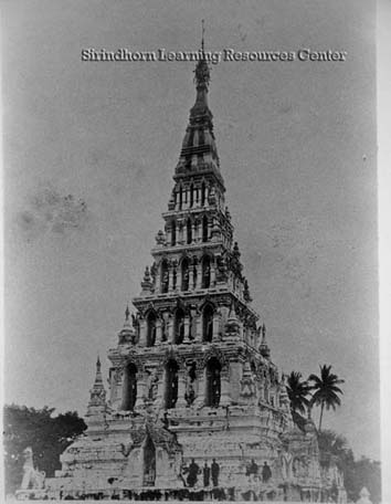จนในปี พ.ศ. 1830 ทรงให้ช่างไปถ่ายแบบพระเจดีย์ จากวัดจามเทวี จังหวัดลําพูน มาเป็นต้นแบบ พญาเม็งรายให้ขุดคูเวียงทั้งสี่ด้าน แล้วให้ขุดหนองสระใกล้ที่ประทับ พระองค์ทรงโปรดให้เอาดินที่ขุดจากหนองมาปั้นเป็นอิฐ นำมาก่อเป็นเจดีย์ไว้ในเวียงกุมกาม