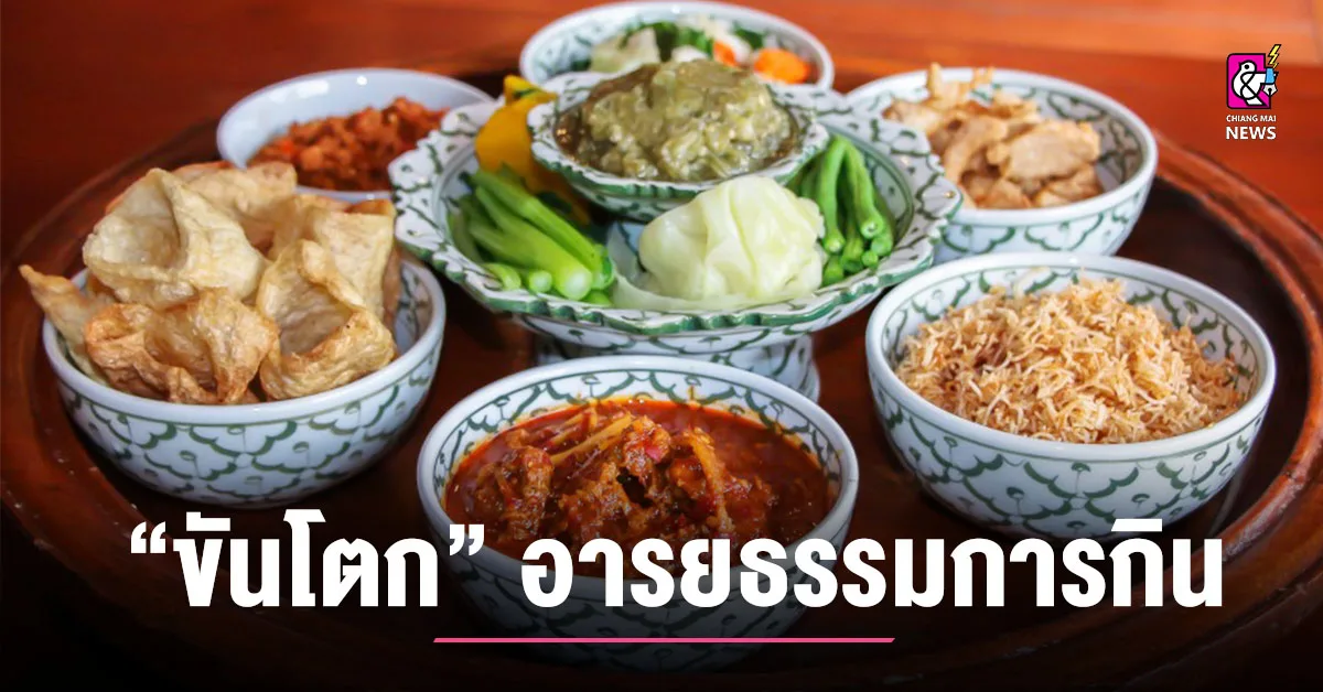 ขันโตกมีรากฐานมาจากวัฒนธรรมการกินของชาวล้านนาในภาคเหนือของประเทศไทย คำว่า “ขันโตก” มาจากคำว่า “ขัน” ซึ่งหมายถึงถาดหรือภาชนะสำหรับใส่อาหาร และ “โตก” ซึ่งหมายถึงโต๊ะเตี้ยที่ใช้วางอาหาร ขันโตกมักจะทำจากไม้และมีขนาดเล็กพอที่จะนั่งรับประทานอาหารรอบๆ ได้