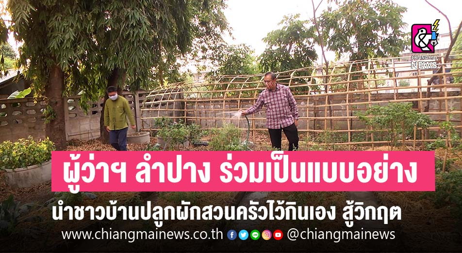 ผู้ว่าราชการจังหวัดลำปาง เปิดจวนชวนชาวบ้านสร้างความมั่นคงทางอาหาร ทำเศรษฐกิจพอเพียงปลูกผักสวนครัวรั้วกินได้ ร่วมฝ่าวิกฤติ COVID-19 “อยู่บ้าน หยุดเชื้อ เพื่อชาติ” ท่ามกลางสภาวการณ์การแพร่ระบาดของเชื้อไวรัสโคโรนา 2019 หรือ COVID-19 ซึ่งได้กลายเป็นโรคระบาดครั้งใหญ่ของโลก จนทำให้เศรษฐกิจของประเทศต่างๆ รวมทั้งประเทศไทยต้องชะงัก ประชาชนจำนวนไม่น้อยได้รับความลำบาก หลายคนต้องหยุดงานขาดรายได้ไม่มีปัจจัยช่วยในการดำรงชีวิต ขณะที่คนส่วนใหญ่ก็ไม่สามารถพึ่งพาตนเองได้ ต้องเดือดร้อนหนักถึงขั้นขาดแคลนอาหาร กลายเป็นปัญหาเรื่องปากท้องที่ยากแก้ไขในยามวิกฤต โดยจากปัญหาที่เกิดขึ้น ทางหน่วยงานภาครัฐจึงได้น้อมนำหลักปรัชญาเศรษฐกิจพอเพียงลงมาสู่การปฏิบัติ เพื่อเป็นแนวทางในการแก้ไขปัญหา ส่งเสริมให้พี่น้องประชาชนได้ปลูกพืชผักสวนครัว ไว้สำหรับรับประทานกันเองในครัวเรือน เพื่อสร้างความมั่นคงทางด้านอาหาร ซึ่งจะช่วยแก้ไขบรรเทาผลกระทบได้ในระยะสั้น และเพื่อเตรียมพร้อมในการที่จะรับมือกับสถานการณ์วิกฤต ในลักษณะดังกล่าวที่อาจเกิดขึ้นได้อีกในอนาคต