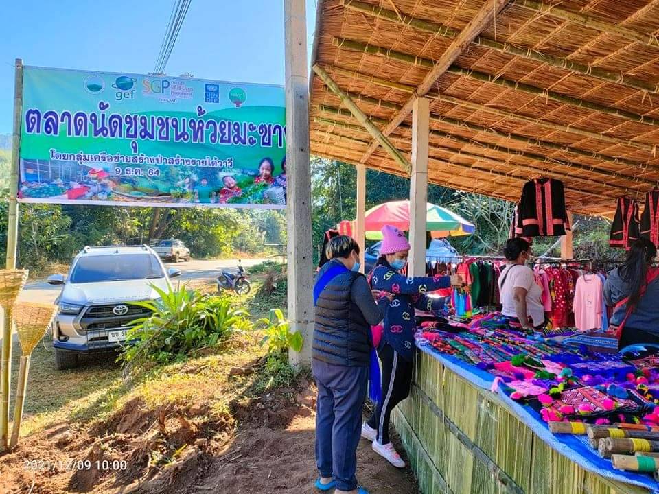 สำหรับสินค้าในตลาดนัดหลากหลายชนิดที่ชาวบ้านห้วยมะซางได้นำมาจำหน่ายในตลาดนัดวันนี้มีผลิตผลจากการเกษตร พืชผักผลไม้ ผลิตภัณฑ์ชา กาแฟ ของที่ระลึก สินค้าเสื้อผ้าชนเผ่า กระเป๋า ซึ่งเป็นผลิตภัณฑ์งานมือของชาวบ้านที่เป็นเอกลักษณ์ของชนเผ่าหมู่บ้านห้วยมะซาง