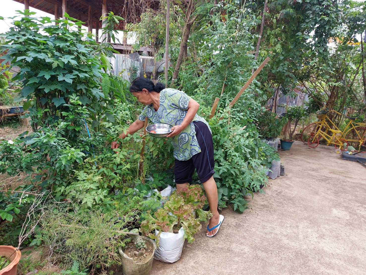 นางมิดชิด บ้านน้ำชำ หมู่ที่ 2 ตำบลน้ำชำ อำเภอสูงเม่น จังหวัดแพร่ ใช้เวลาว่างดำเนินการปลูกผักสวนครัวรั้วกินได้ เพื่อนำไปสู่การพึ่งพาตนเอง ความพอเพียงระดับครัวเรือน สร้างความมั่นคงทางอาหารที่ปลอดสารพิษต่างๆ พืชเศรษฐกิจแบบผสมผสาน เพื่อลดค่าใช้จ่าย เป็นการพึ่งพาตนเองได้อย่างแท้จริง สร้างรายได้อย่างยั่งยืน