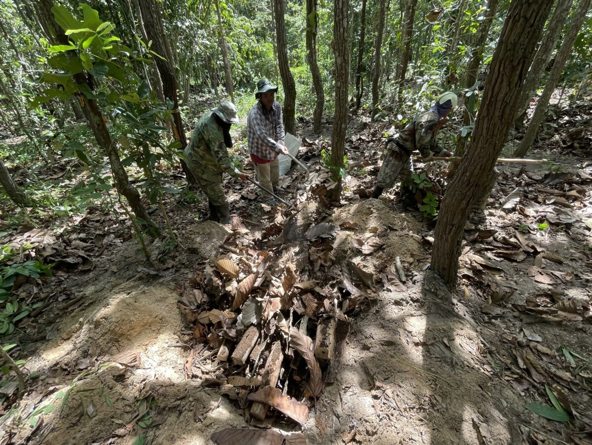 ทำการป่มเพาะในพื้นที่ป่า เช่นในพื้นนที่ป่าชุมชน โดยเฉพาะกล้าไม้ตระกูลยางนา ได้เติมเชื้อเห็ดป่าเข้าไปตั้งแต่เริ่มเพาะต้นกล้า เป็นตัวขับเคลื่อนความร่วมมือในการลดการเผาป่าเพื่อ