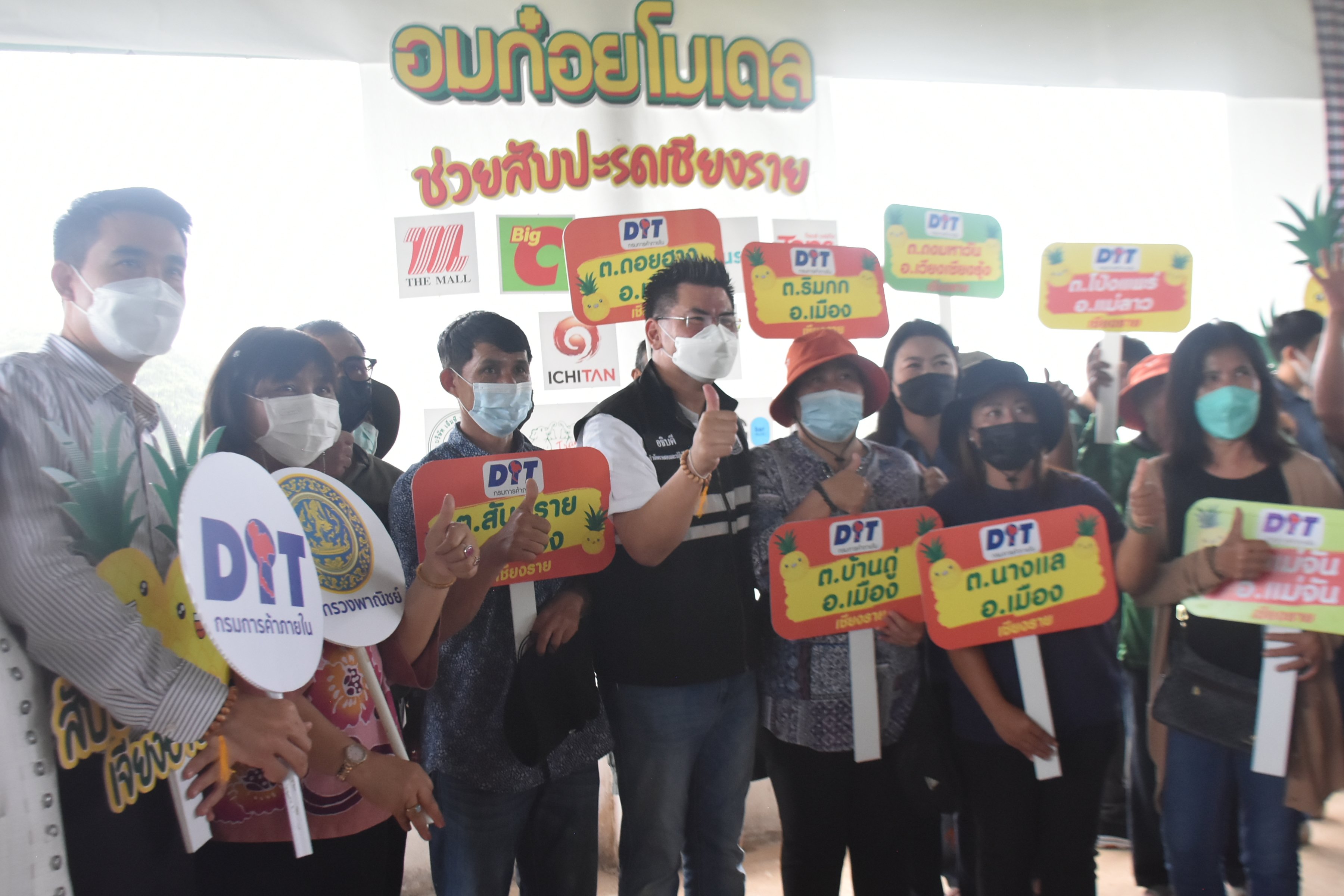 โดยความร่วมมือระหว่าง อิชิตัน และปั๊มพีที ภายใต้แบรนด์ หลวงพ่อพบโชค การแปรรูปสับปะรดเป็นผลิตภัณฑ์อบแห้งส่งออกต่างประเทศ และการกระจายผลผลิตในประเทศผ่านห้างค้าส่ง-ค้าปลีก และผู้ประกอบการ ซึ่งการรับซื้อสินค้าสับปะรดเป็นการล่วงหน้านี้ จะเป็นหลักประกันให้กับเกษตรกรได้ว่าจะสามารถขายได้ในราคาที่ทำการซื้อขายอย่างแน่นอน ซึ่งภายใต้กิจกรรม “อมก๋อยโมเดล ช่วยสับปะรดเชียงราย” ในครั้งนี้จะส่งผลให้ราคาซื้อขายปัจจุบันอยุ่ในเกณฑ์ดีกว่าปีที่ผ่านมาเป็นอย่างมาก