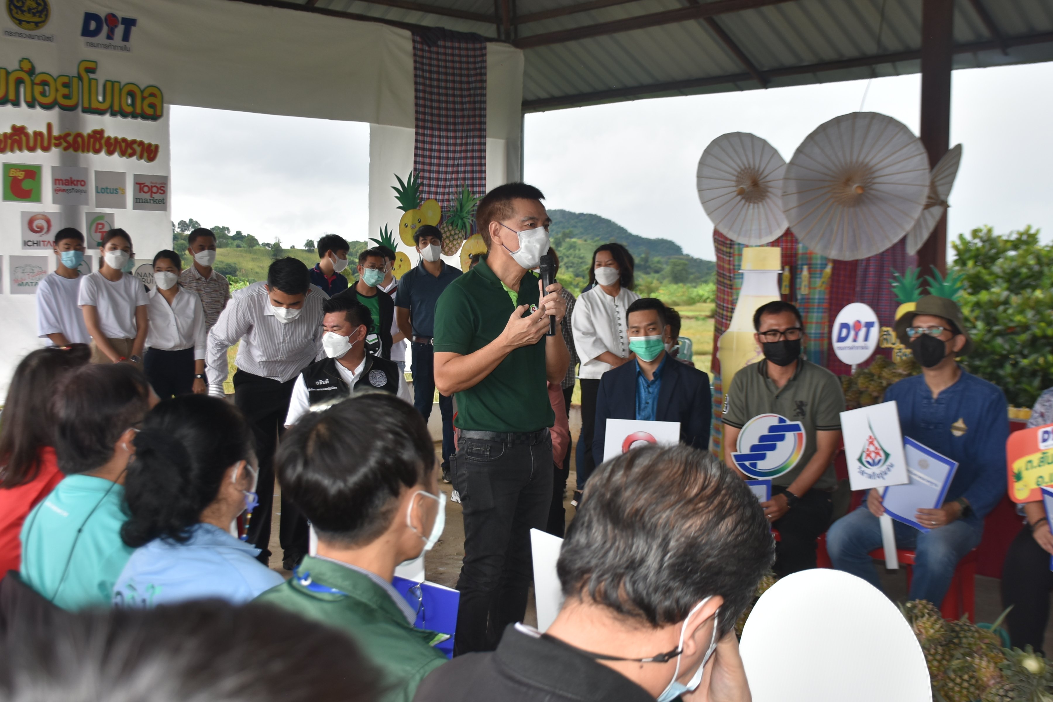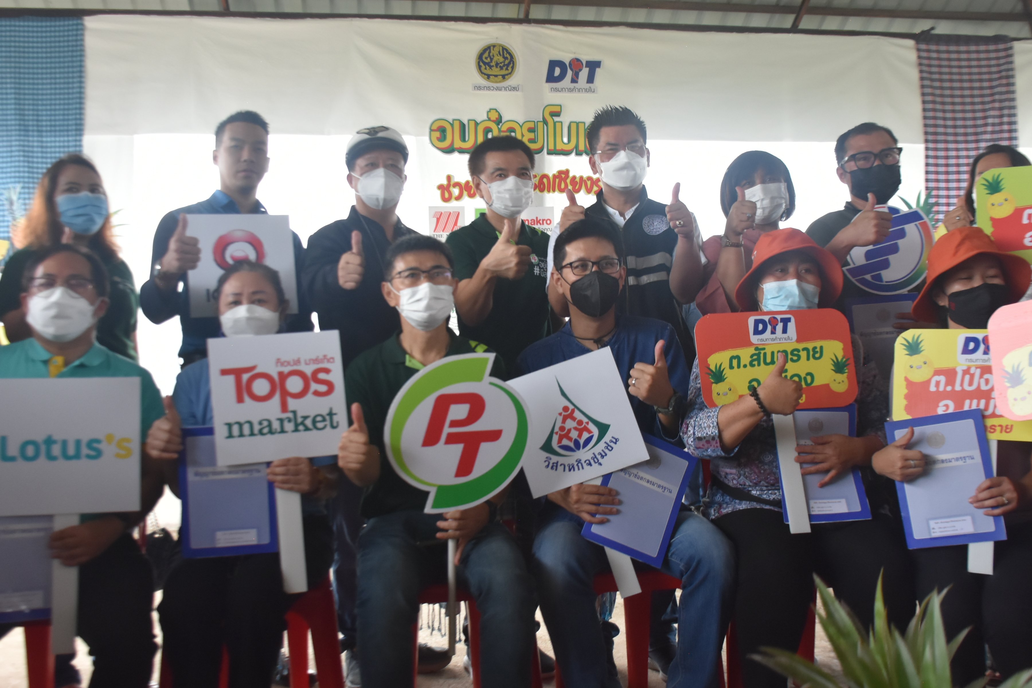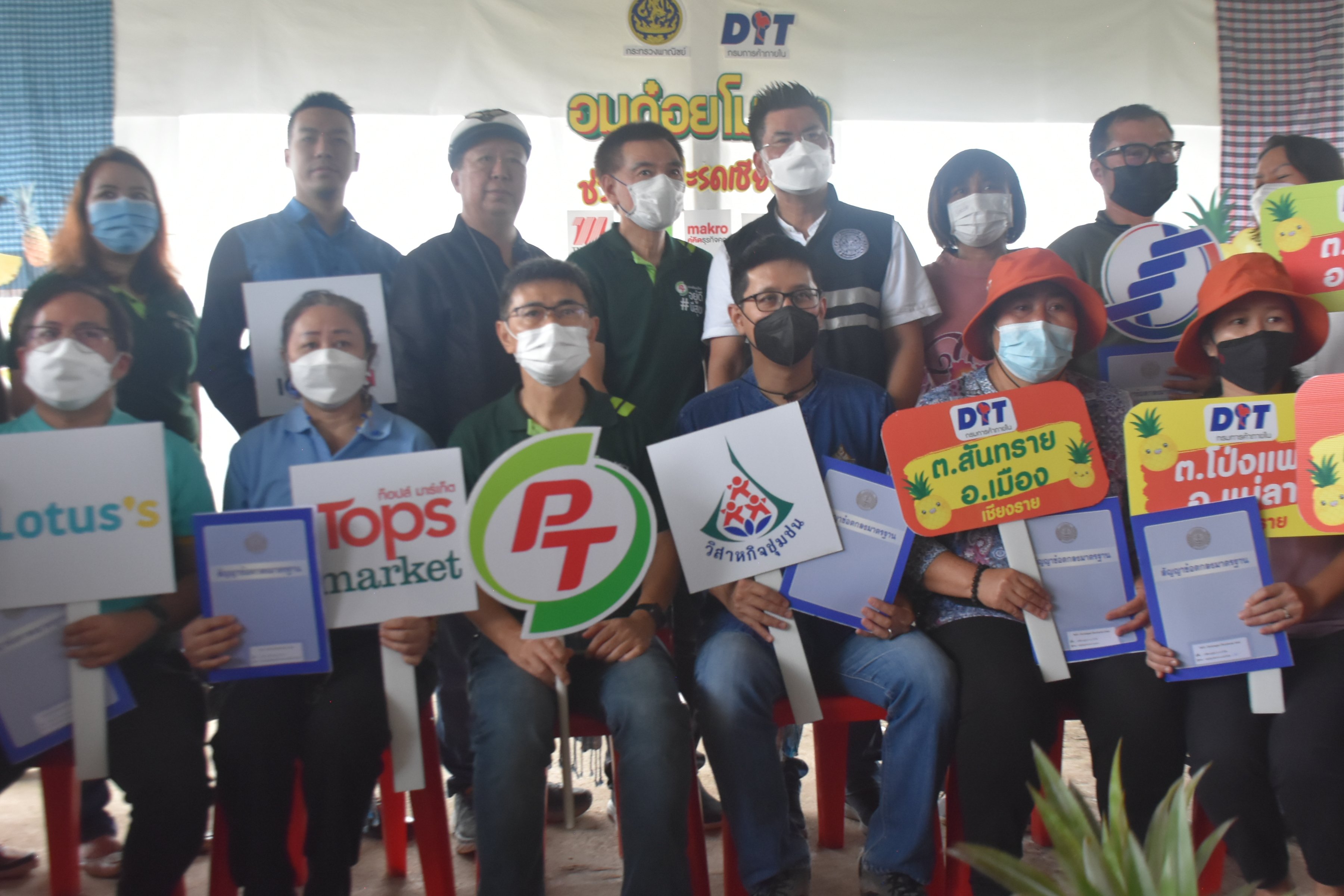 (บจก. สตูดิโอ จี บาร์ บจก. มาตา เทรดดิ้ง และบจก. เอ็มที ฟรุ๊ตแลนด์) ห้างค้าส่ง-ค้าปลีก (แม็คโคร โลตัส เดอะมอลล์ เซ็นทรัล และบิ๊กซี) ทำสัญญาซื้อขายล่วงหน้าผลผลิตสับปะรด ภายใต้สัญญาข้อตกลงมาตรฐานของกรมการค้าภายใน กับกลุ่มเกษตรกรผู้ปลูกสับปะรด จ.เชียงราย จำนวน 12 กลุ่ม 4 อำเภอ รับซื้อสับปะรดเชียงราย รวม 12,600 ตัน แบ่งเป็น พันธุ์ภูแล 8,300 ตัน ในราคานำตลาด ไม่ต่ำกว่า กก.ละ 6 บาท ปัตตาเวีย 4,300 ตัน ในราคานำตลาดไม่ต่ำกว่า กก.ละ 5 บาท เพื่อกระจายผลผลิตออกสู่ช่องทางต่างๆ ไม่ว่าจะเป็น การแปรรูปเป็นน้ำสับปะรด