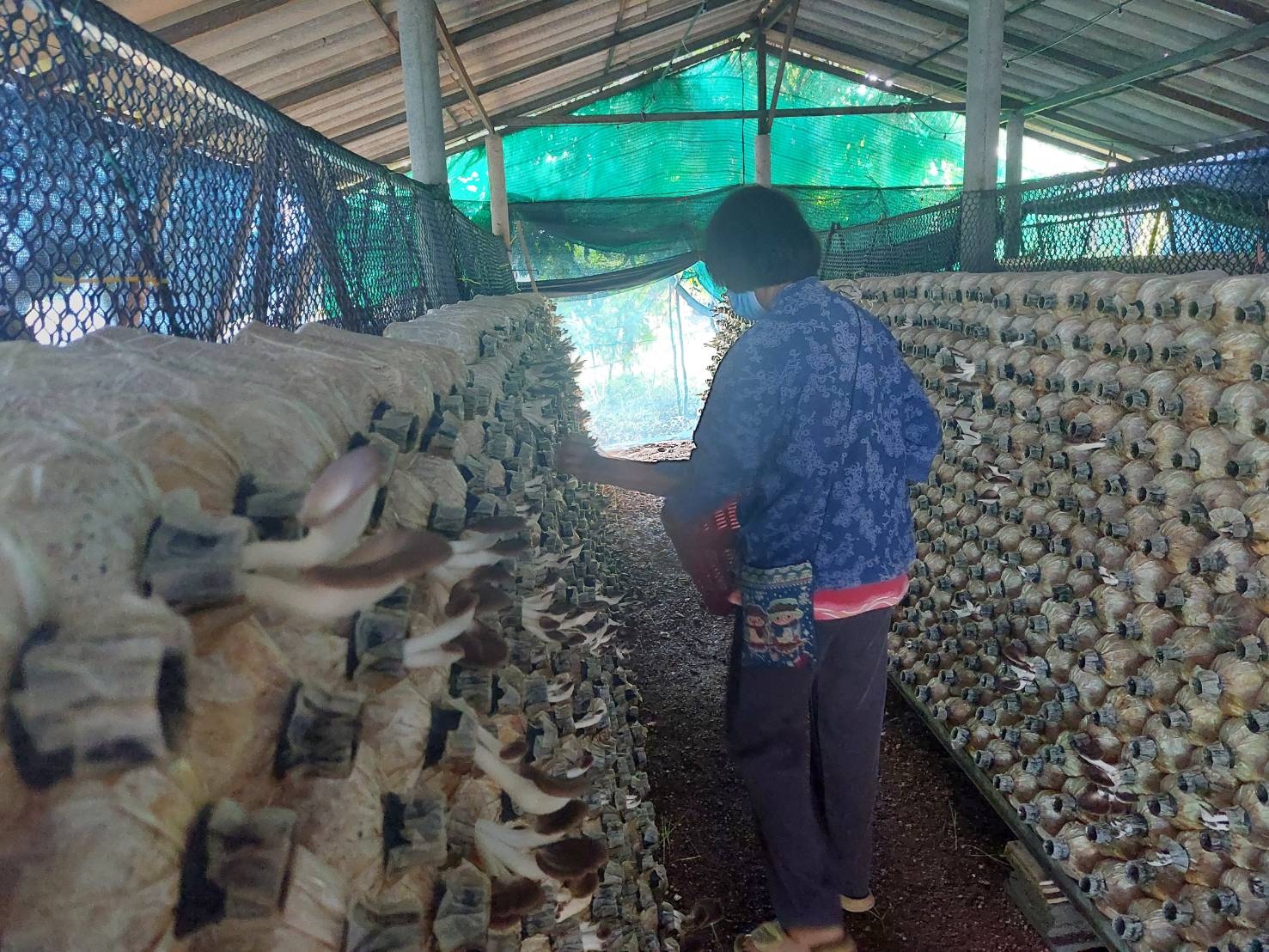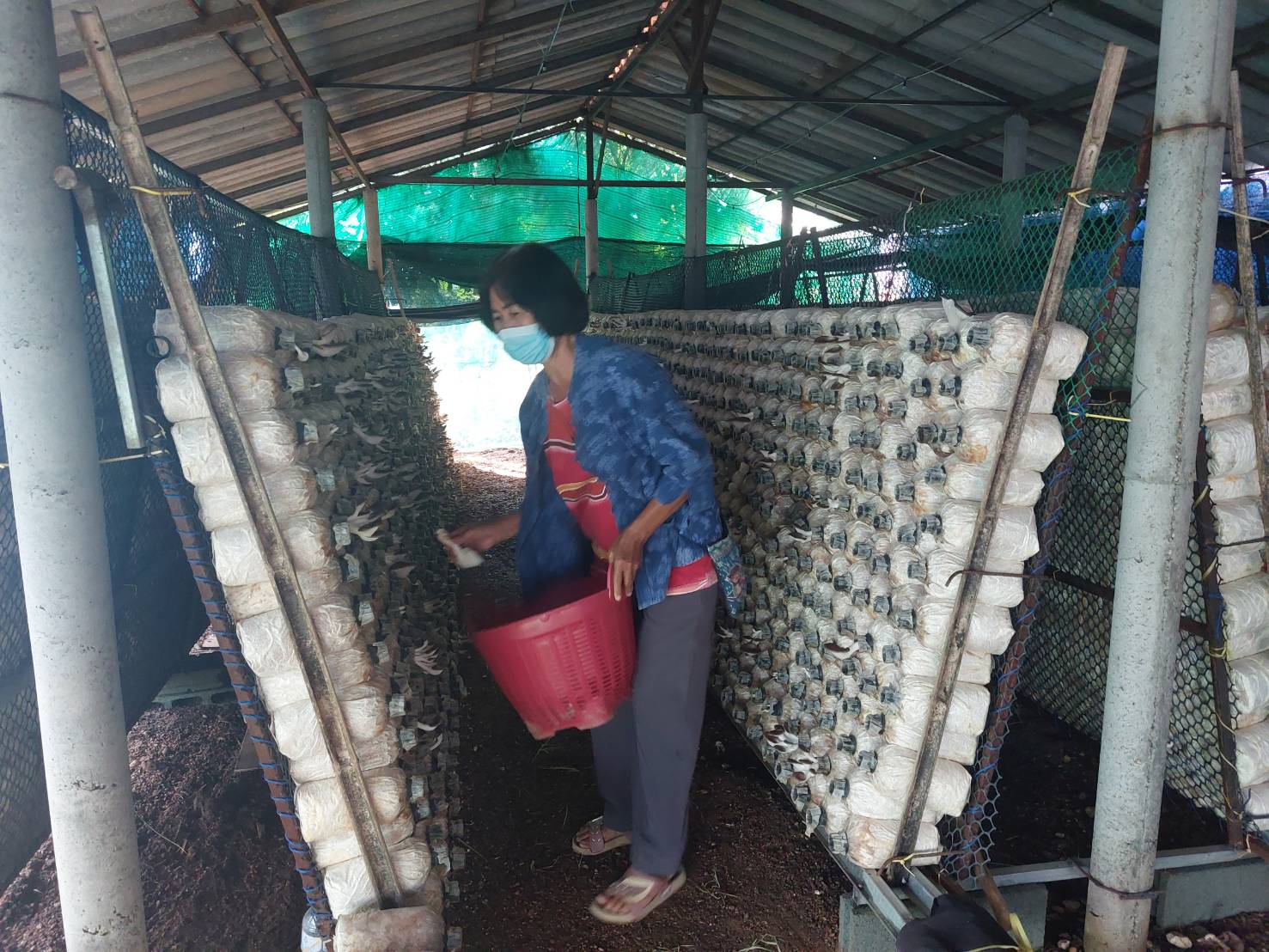 ลงพื้นที่เยี่ยมชมผลผลิตการทำเห็ด พร้อมให้คำแนะนำการแปรรูปผลผลิต เพื่อเพิ่มมูลค่าของผลผลิต ช่วยเก็บรักษาผลผลิตไว้บริโภคในครัวเรือนเป็นเวลานานโดยไม่เน่าเสีย ทำให้เกิดผลิตภัณฑ์ใหม่ๆ ที่มีรูปแบบและรสชาติแตกต่างจากเดิม ช่วย เพิ่มความหลากหลายให้แก่ผลผลิต ทำให้บริโภคสะดวก ของครัวเรือน นางเพ็ญนภา คงคา หมู่ที่ 9 ตำบลสูงเม่น