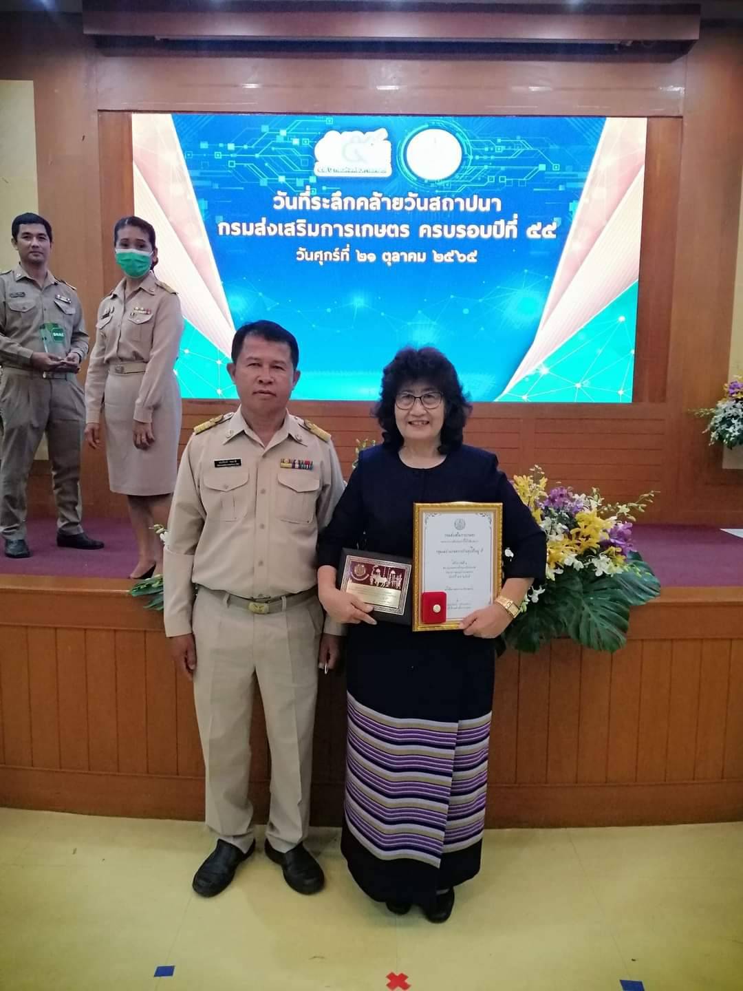 เมื่อวันที่ 21 ตุลาคม 2565 ณ ห้องประชุม 7 อาคาร 1 กรมส่งเสริมการเกษตร กรุงเทพมหานคร ดร.เฉลิมชัย ศรีอ่อน รัฐมนตรีว่าการกระทรวงเกษตรและสหกรณ์ เป็นประธานพิธีมอบรางวัลสถาบันเกษตรกรดีเด่นระดับประเทศ ในงานวันที่ระลึกคล้ายวันสถาปนากรมส่งเสริมการเกษตร ในวาระครบรอบปีที่ 55