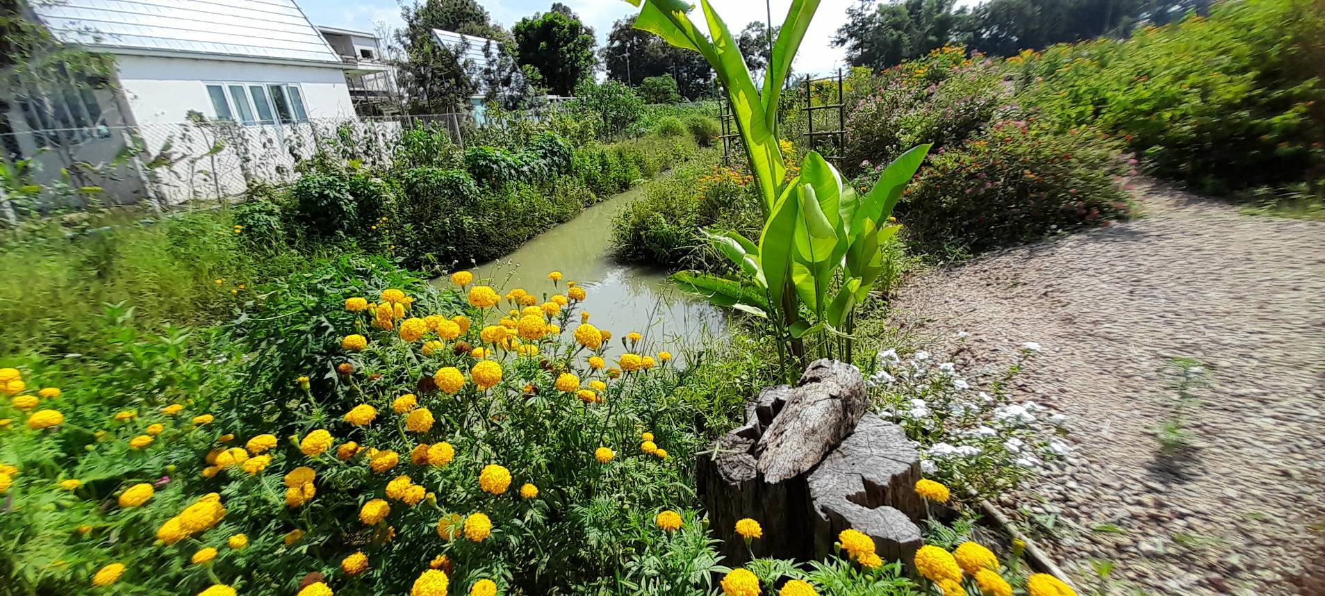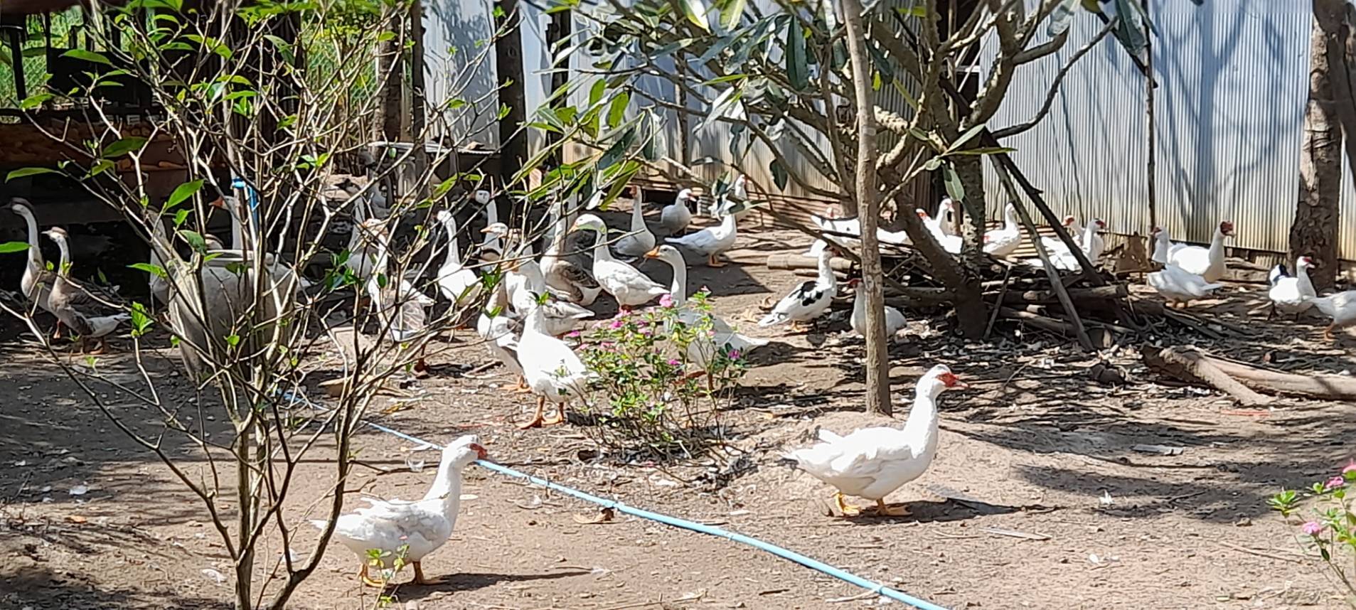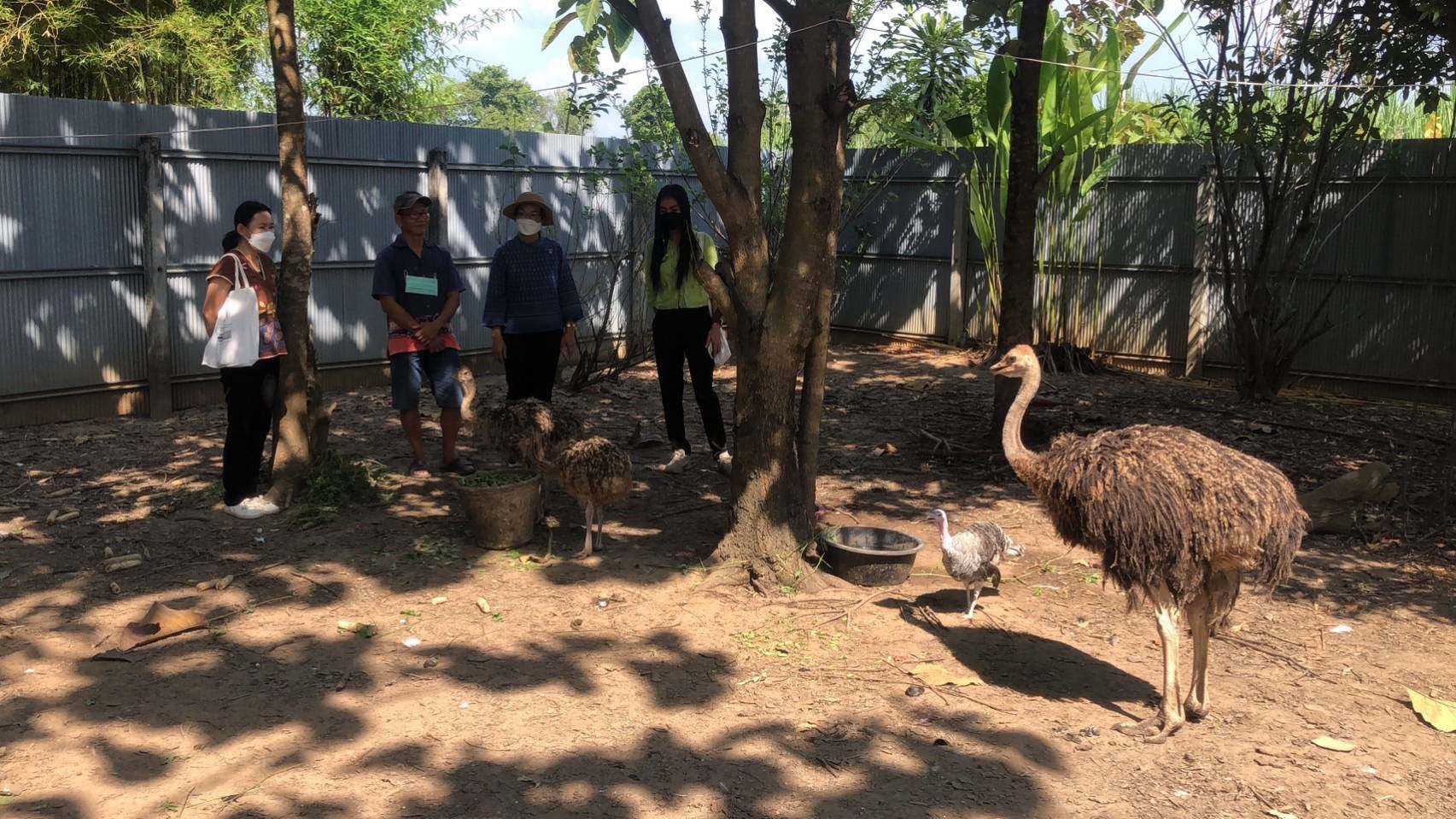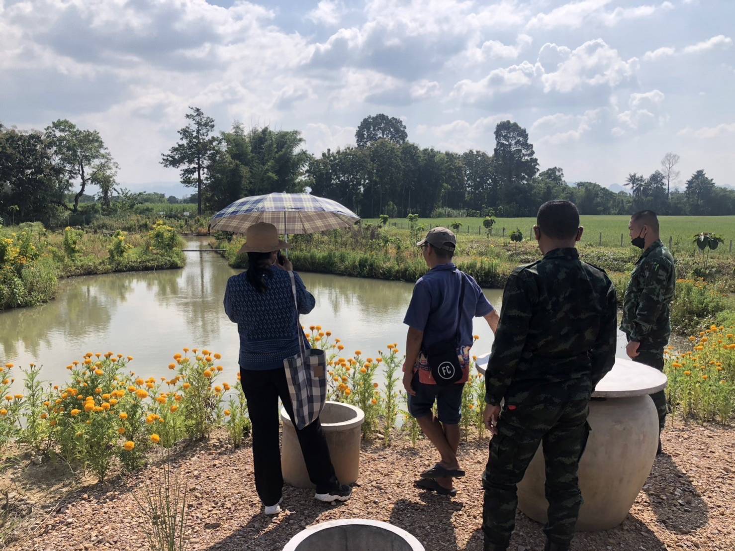 ที่ศูนย์เรียนรู้ทฤษฏีใหม่ รูปแบบ “โคก หนอง นา” แปลงนางจันทร์เพ็น-นายธวัช วงษ์ราช หมู่ที่ 2 ต.แม่ตาว อ.แม่สอด จ.ตาก นางฐานิต หลำคำ พัฒนาการ อ.แม่สอด นายณภัสรัญชน์ อายุยืน และน.ส.กิรณา มาตย์เมือง พัฒนากรลงพื้นที่ติดตามการดำเนินโครงการ การพัฒนาศูนย์เรียนรู้ทฤษฏีใหม่ รูปแบบ “โคก หนอง นา” แปลงนางจันทร์เพ็น-นายธวัช วงษ์ราช ซึ่งได้ดำเนินการพัฒนาฐานเรียนรู้ภายในศูนย์ ได้แก่ 1. ฐานเรียนรู้การเลี้ยงสัตว์ปีก (นกกระจอกเทศ, นกยูง เป็ด ห่าน ไก่งวง ไก่ต๊อก ไก่แจ้) 2. ฐานเรียนรู้การเลี้ยงปลา 3. ฐานเรียนรู้การบริหารจัดการพื้นที่รูปแบบ “โคก หนอง นา” (การปลูกไม้ 5 ระดับ การปลูกพืชผักสวนครัวปลอดสาร) 4.ฐานเรียนรู้การทำผลิตภัณฑ์ของใช้ แปรรูปจากไม้มะค่า ไม้จามจุรี 5. ฐานเรียนรู้การทำผลิตภัณฑ์ของฝาก ของที่ระลึกจากขนนกยูง
