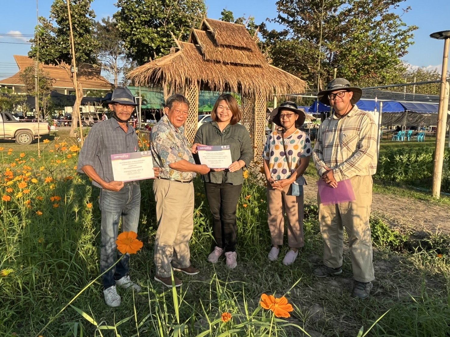 เมื่อเวลา 17.00 น. วันที่ 12 ธ.ค. 2565 ผศ.ดร.ดรุณี นาพรหม คณะบดีคณะเกษตรศาสตร์ มช. มอบหมายให้ ผศ.ดร.ต่อนภา ผุสดี รองคณบดีฝ่ายวิจัยและนวตกรรม คณะเกษตรศาสตร์ มช. พร้อมนายทัพไท หน่อสุวรรณ นักวิทยาศาสตร์เกษตร คณะเกษตรศาสตร์ มช.มอบประกาศนียบัตรให้นายดี จันทคลักษณ์ อดีตกำนันตำบลแม่เหียะ และผู้ดูแลดีดีฟาร์ม (ฟาร์มปลูกผักปลอดสารเคมี) และประธานวิสาหกิจชุมชนผิดอาหารสัตว์ ที่ได้มาจัดแสดงรูปแบบผลิตพืชผักปลอดสารพิษในแปลงสาธิตการพัฒนาระบบนิเวศเกษตรเมือง ภายใต้การจัดแสดงในโครงการพัฒนาฟาร์มมหาวิทยาลัยเพื่อการผลิตพืชอาหารปลอดภัยตามแนวทาง BCG Economy Model