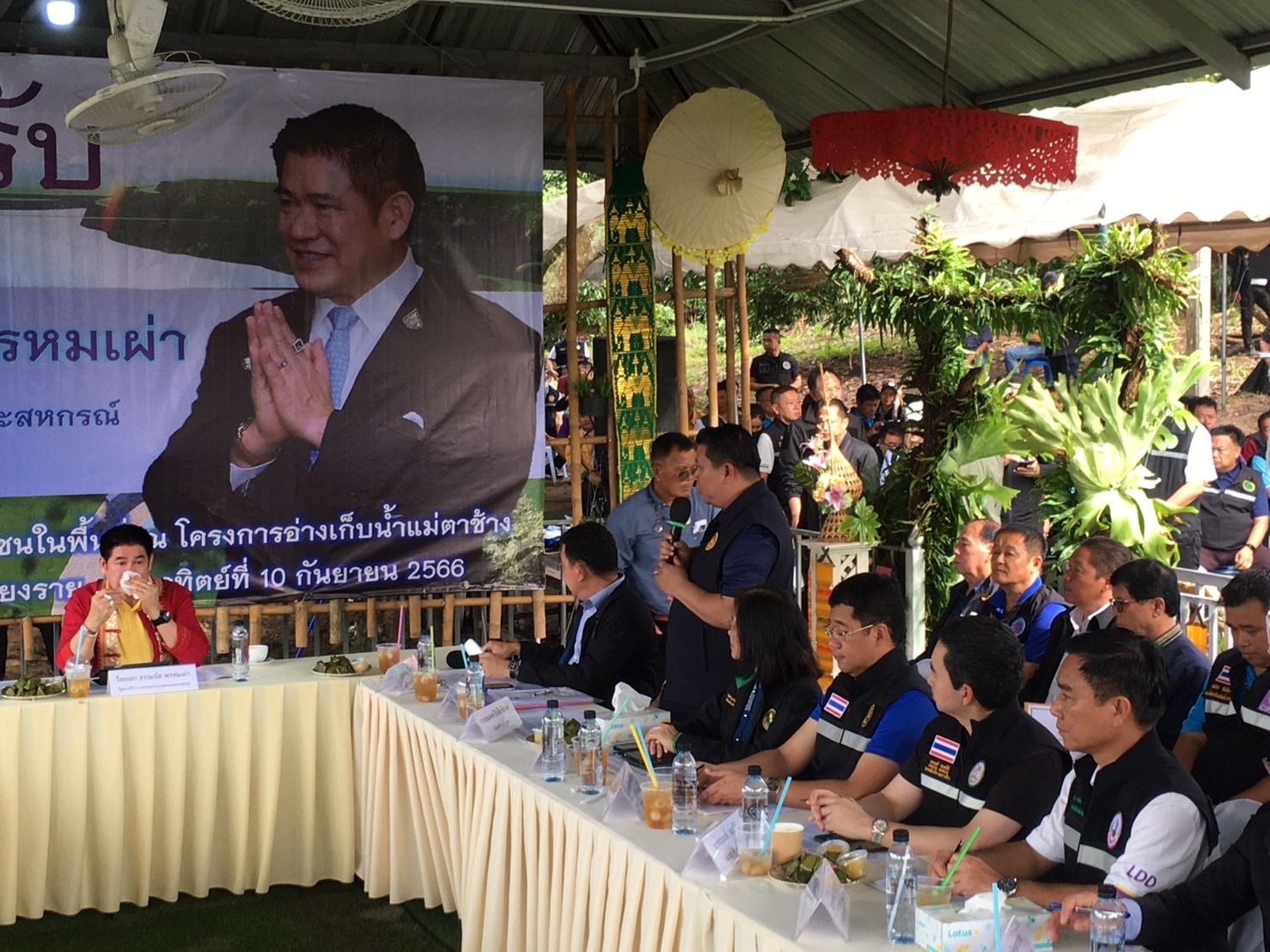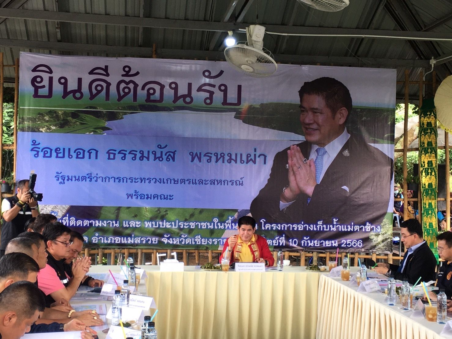 เมื่อเวลา 14.00 น. วันที่ 10 ก.ย. 66 ร.อ.ธรรมนัส พรหมเผ่า รมว.กระทรวงเกษตรและสหกรณ์ พร้อมคณะ ลงพื้นที่ตรวจติดตามการดำเนินงานการก่อสร้างโครงการอ่างเก็บน้ำแม่ตาช้าง ต.ป่าแดด อ.แม่สรวย จ.เชียงราย โดยมีนายศรัณยู มีทองคำ รองผู้ว่าราชการจังหวัดเชียงราย นายสุรเดช สมิเปรม รองปลัดกระทรวงเกษตรและสหกรณ์ นายประพิศ จันทร์มา อธิบดีกรมชลประทาน คณะผู้บริหารกระทรวงเกษตรและสหกรณ์ หัวหน้าส่วนราชการ เข้าร่วม ตลอดจนกลุ่มเกษตรกรผู้ใช้น้ำลำนำแม่กื้ด เครือข่ายเกษตรกรชาวสวนลำไย 8 จังหวัดภาคเหนือ ชมรมสหกรณ์โคนมภาคเหนือ จำกัด และกลุ่มเกษตรกรที่มารอให้การต้อนรับอย่างหนาแน่น