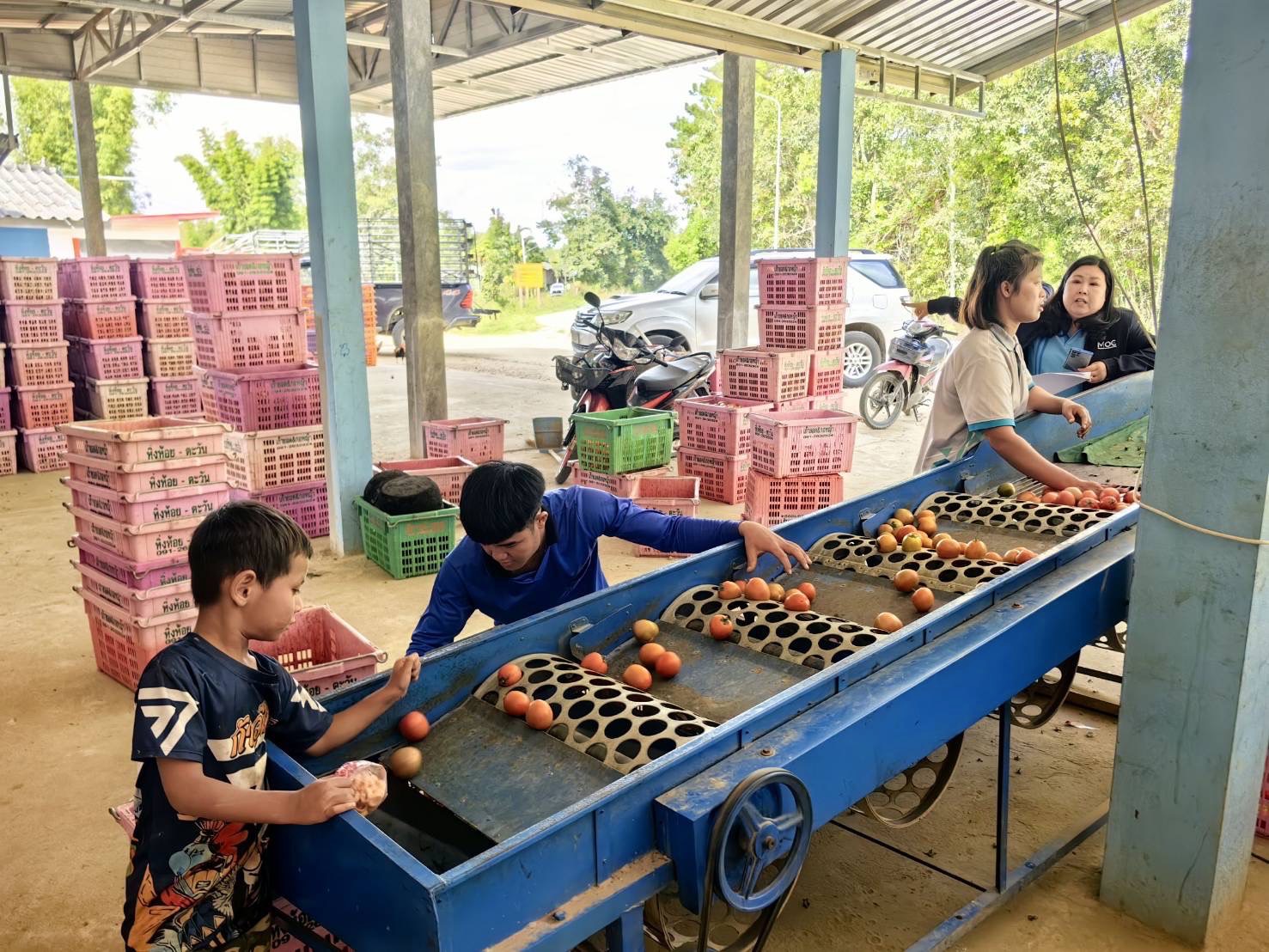 วันที่ 5 ธันวาคม 2567 สำนักงานพาณิชย์จังหวัดเชียงใหม่ ได้ลงพื้นที่ตำบลยางเปียง อำเภออมก๋อย จังหวัดเชียงใหม่ เพื่อติดตามสถานการณ์การรับซื้อมะเขือเทศ พร้อมทั้งพบปะเกษตรกรและผู้ประกอบการที่รับซื้อมะเขือเทศ หรือ ล้ง พบว่า ได้มีการรับซื้อมะเขือเทศจากเกษตรกรอย่างต่อเนื่องตั้งแต่ต้นฤดู ประกอบกับขณะนี้เป็นช่วงปลายฤดู ส่งผลให้ผลผลิตออกสู่ตลาดลดน้อยลง และกระจายอยู่ในแต่ละสวน ไม่ได้มีการรวบรวมผลผลิต ซึ่งที่ผ่านมาเกษตรกรนิยมขายให้กับผู้รับซื้อขายย่อยในพื้นที่มากกว่าการขายให้กับล้งโดยตรง