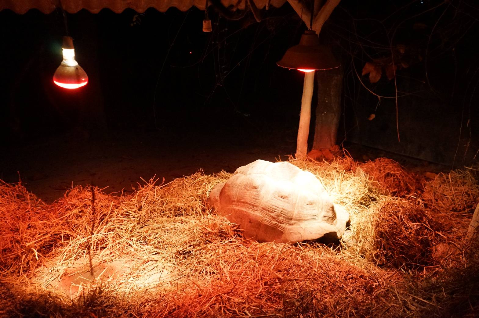 - การจัดเตรียมที่กำบังลมให้กับสัตว์ ให้มีจุดหลบลมหนาว (Shelter) เช่น ซุ้มหรือบ้านหลังเล็ก (ในคอกเต่าซูลคาต้า)