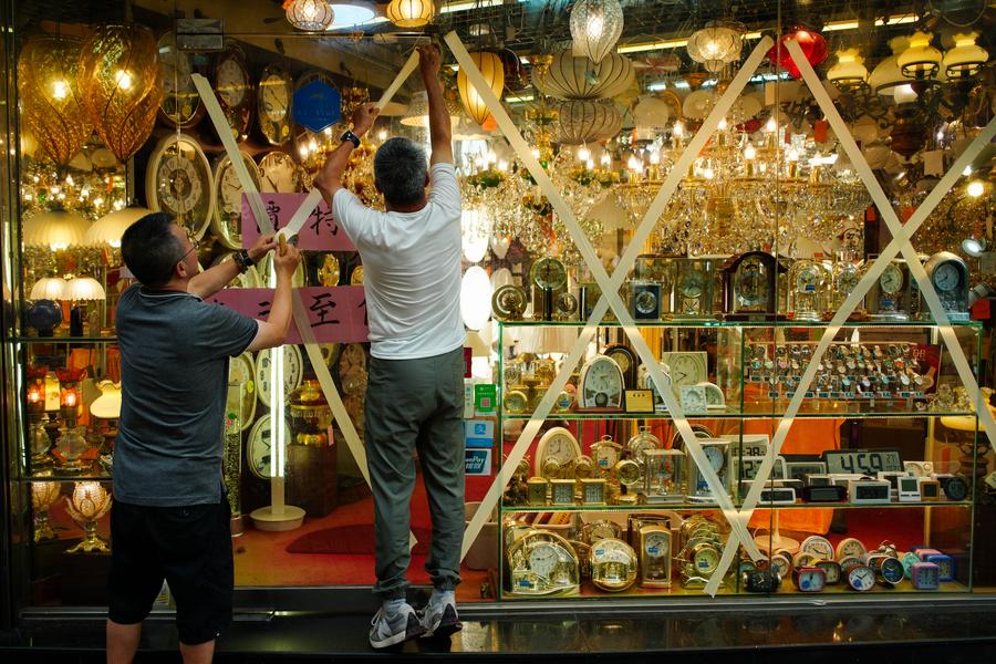ฮ่องกง/เซินเจิ้น, 23 ก.ย. (ซินหัว) — ประมวลภาพการเตรียมพร้อมรับมือกับพายุไต้ฝุ่นรากาซา (Ragasa) ในเขตบริหารพิเศษฮ่องกง และเมืองเซินเจิ้นของมณฑลกว่างตง (กวางตุ้ง) ทางตอนใต้ของจีน โดยประชาชนออกซื้อสินค้าอาหารและน้ำดื่มอันจำเป็นต่อการดำรงชีวิต ร้านค้าติดเทปกาวบนบานกระจกเพื่อป้องกันการแตกร้าว และหน่วยงานท้องถิ่นส่งเจ้าหน้าที่ออกตัดกิ่งก้านต้นไม้และเสริมความแข็งแรงของเสาไฟ