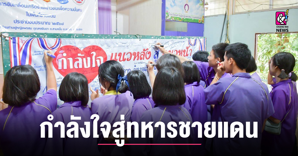 แม้ว่าสถานการณ์จะสงบลง แต่ “กำลังใจ” ยังคงสำคัญสำหรับทหารในแนวหน้า วันนี้น้องๆเยาวชนจากโรงเรียนท่านผู้หญิงพรสม กุลฑลจินดา อ.แม่ระมาด จ.ตาก รับรู้ได้ถึงความมุ่งมั่นทุ่มเทของพี่ๆทหารไทยที่เต็มที่กับการปฏิบัติหน้าที่ เพื่อปกป้องอธิปไตยและรักษาผลประโยชน์ของชาติในครั้งนี้ แต่ทำได้เพียงร่วมกันส่งผ่านคำขอบคุณและกำลังใจ ในรูปแบบข้อความไปให้พี่ทหาร และเก็บเอาพี่ๆทหารเป็นแรงผลักดันในการตั้งใจศึกษาเล่าเรียน เพื่อเป็นกำลังของชาติในอนาคตต่อไป