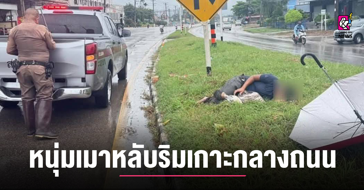 หนุ่มเมาเหล้ากลับไม่ถึงบ้าน หลับตรงเกาะกลางถนน