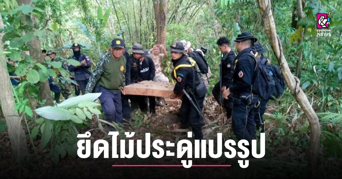 ทหารพราน 3504 สนธิกำลังหลายฝ่าย ยืดไม้ประดู่แปรรูป กลางป่าสงวนฯ