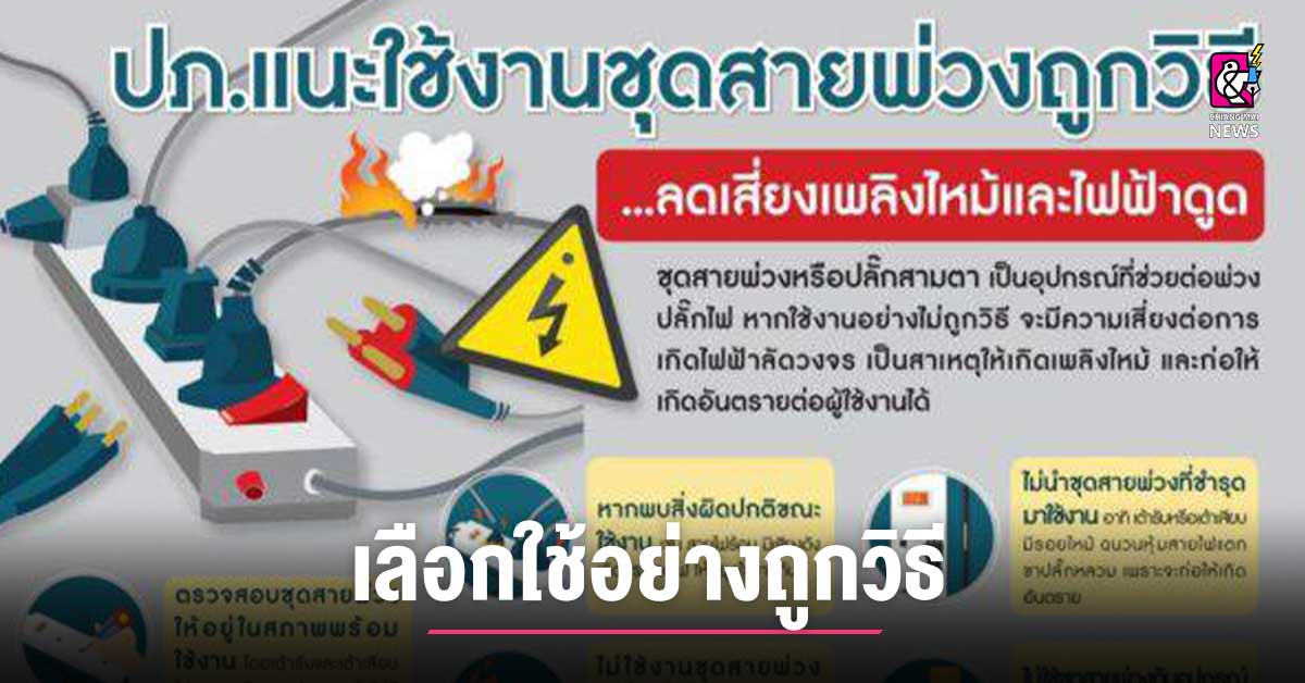 ปภ.แนะเรียนรู้ – เลือกใช้ชุดสายพ่วงถูกวิธี…ลดเสี่ยงเพลิงไหม้