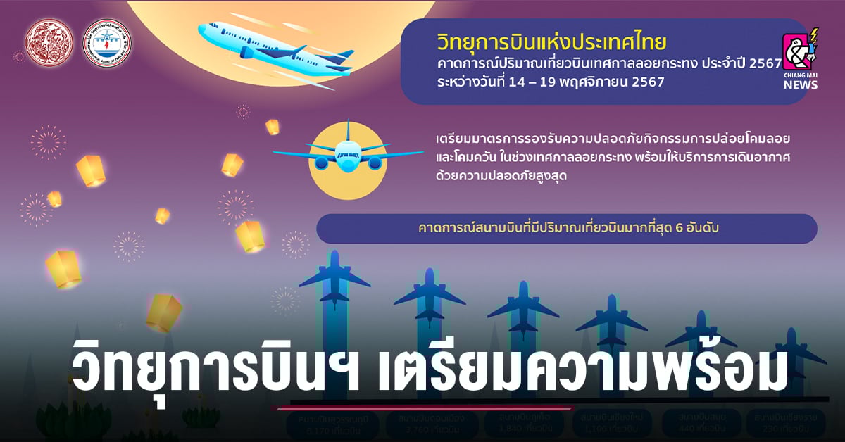 วิทยุการบินฯ เตรียมมาตรการพร้อมรับทุกเที่ยวบิน ช่วงลอยกระทงเพิ่มขึ้น 36%