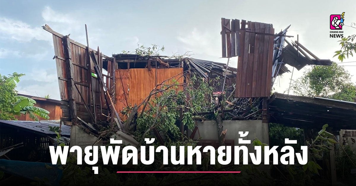 พายุลมแรงพัดบ้านของชาวบ้านหายไปทั้งหลัง ที่ บ้านแซม ต.ม่วงน้อย อ.ป่าซาง