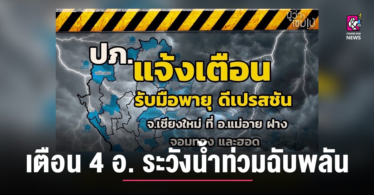 เมื่อเวลา 21.00 น วันที่ 17 ก.ย.2567 ที่เชียงใหม่ นายนิรัตน์ พงษ์สิทธิถาวร ผู้ว่าราชการจังหวัดเชียงใหม่ ออกประกาศเตือนถึงประชาชนใน 4 อำเภอของเชียงใหม่ โดยแจ้งเตือน รับมือพายุ ดีเปรสชัน จ.เชียงใหม่ ที่ อ.แม่อาย อ .ฝาง อ .จอมทอง และ อ .ฮอด โดยให้ประชาชนและหน่วยงานที่เกี่ยวข้อง เฝ้าระวัง น้ำท่วมฉับพลัน น้ำป่าไหลหลาก และน้ำท่วมขัง ในวันที่ 17-23 กันยายน 2567 นี้ โดยทางจังหวัดเชียงใหม่ ได้รับหนังสือจากอธิบดีกรมป้องกันและบรรเทาสาธารณภัย เตือนเรื่องน้ำป่าไหลหลาก,น้ำท่วมฉับพลัน น้ำท่วมขังทางภาคเหนือ และหนังสือประกาศกรมอุตุนิยมวิทยา “เรื่องพายุดีเปรสชัน”โดยเชียงใหม่ ได้มอบหมายให้ทางป้องกันจังหวัดเชียงใหม่แจ้งไปยัง อำเภอต่าง ๆ ในเชียงใหม่ เพื่อเฝ้าระวังน้ำป่าไหลหลาก ,น้ำท่วมฉับพลัน และน้ำท่วมขัง ให้กับหน่วยงานในพื้นที่และประชาชน