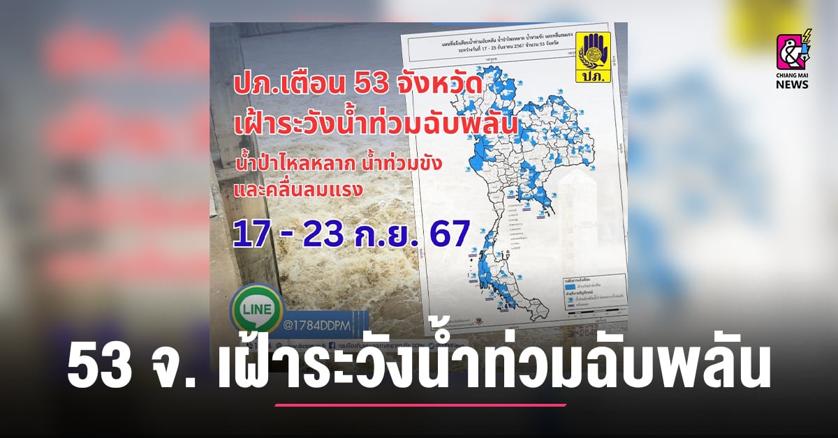 ปภ.แจ้ง 53 จังหวัด เฝ้าระวังน้ำท่วมฉับพลัน น้ำป่าไหลหลาก ในช่วงวันที่ 17 – 23 ก.ย. 67