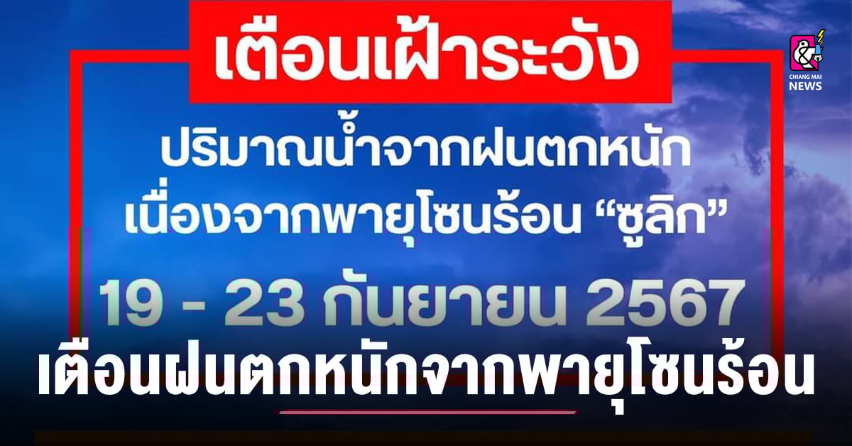 มุกดาหาร เตือน ฝนตกหนักจากพายุโซนร้อน “ซูลิก” 19 -23 กันยายน นี้