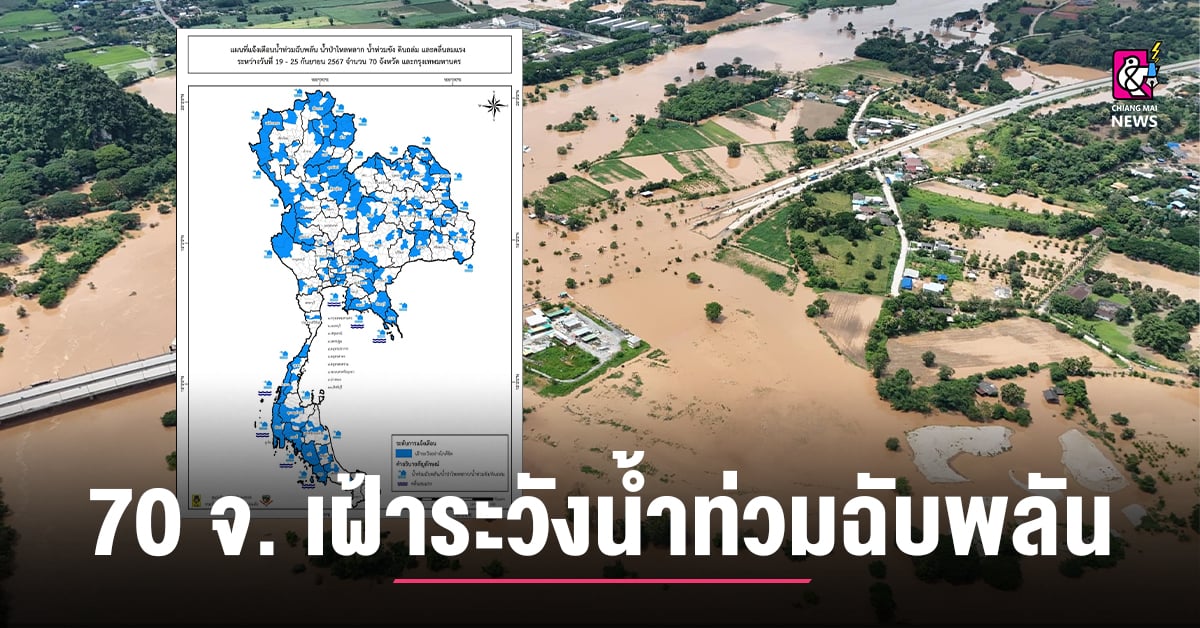 ปภ. เตือน 70 จังหวัด เฝ้าระวังน้ำท่วมฉับพลัน น้ำป่าไหลหลาก ช่วงวันที่ 19-25 ก.ย. 67