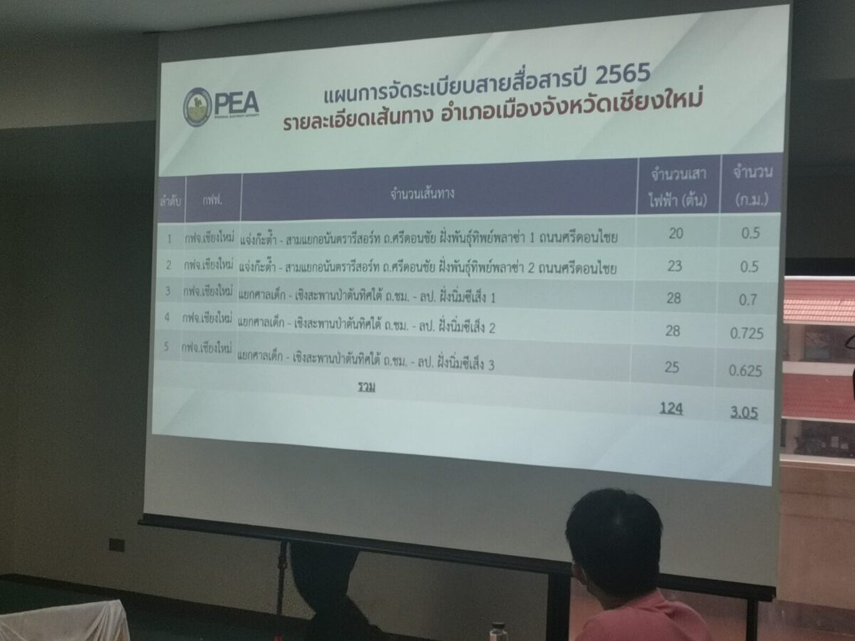 วันที่ 19 ก.ค. 65 เวลา 13.30 น. ที่ห้องประชุม 4 ชั้น 4 อาคารอำนวยการ ศาลากลางจังหวัดเชียงใหม่ นายประจญ ปรัชญ์สกุล ผู้ว่าราชการจังหวัดเชียงใหม่ มอบหมายใน นายวรญาณ บุญณราช รองผู้ว่าราชการจังหวัดเชียงใหม่ เป็นประธานการประชุมหารือแนวทางการจัดระเบียบสายไฟฟ้าและสายสื่อสาร จังหวัดเชียงใหม่ โดยมีหน่วยงานที่เกี่ยวข้อง อาทิ เทศบาลนครเชียงใหม่ การไฟฟ้าส่วนภูมิภาคเขต 1 การไฟฟ้าเชียงใหม่ 1 เชียงใหม่ 2 กสทช. ภาค 3 กสทช. เขต 32 บริษัท โทรคมนาคมแห่งชาติ จำกัด (มหาชน) หรือ NT โยธาธิการและผังเมืองเชียงใหม่ แขวงทางหลวงเชียงใหม่ที่ 2 รวมถึงโอเปอร์เรเตอร์ผู้ให้บริการอินเตอร์เน็ตจากค่ายต่างๆ ที่เดินสายเกาะเกี่ยวไปกับเสาไฟฟ้ามากกว่า 13 ค่าย เข้าร่วมประชุม