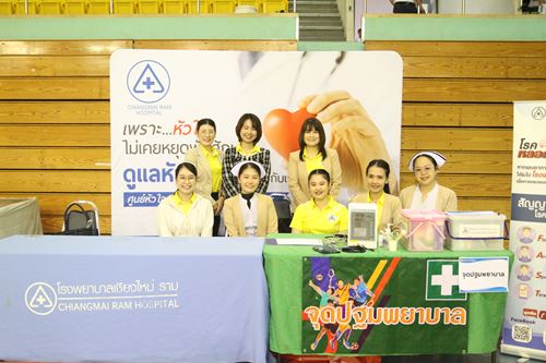 ภายในงาน โรงพยาบาลเชียงใหม่ ราม ได้จัดเตรียมทีมพยาบาลพร้อมทั้งเจ้าหน้าที่โรงพยาบาลเชียงใหม่ ราม เพื่อให้บริการด้านสุขภาพให้คำแนะนำ รวมถึงการช่วยปฐมพยาบาล แก่พนักงานกรณีเจ็บป่วยหรือเกิดอุบัติเหตุฉุกเฉินระหว่างการเข้าร่วมกิจกรรมทำให้ผู้เข้าร่วมกิจกรรมในครั้งนี้ได้รับการดูแลได้อย่างถูกต้องและปลอดภัย ณ สนามกีฬาสมโภชเชียงใหม่ 700 ปี ในวันที่ 3 กุมภาพันธ์ 2567