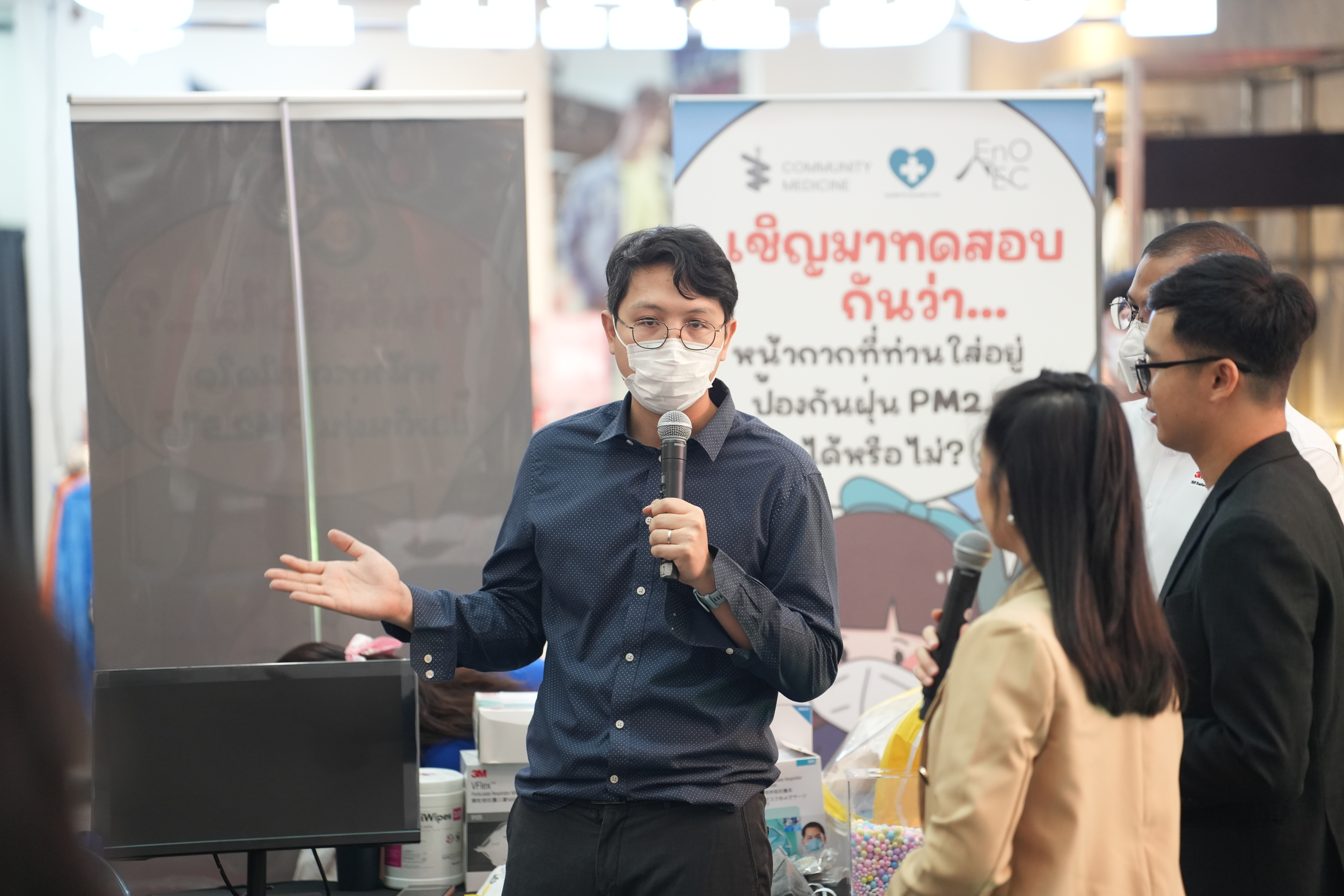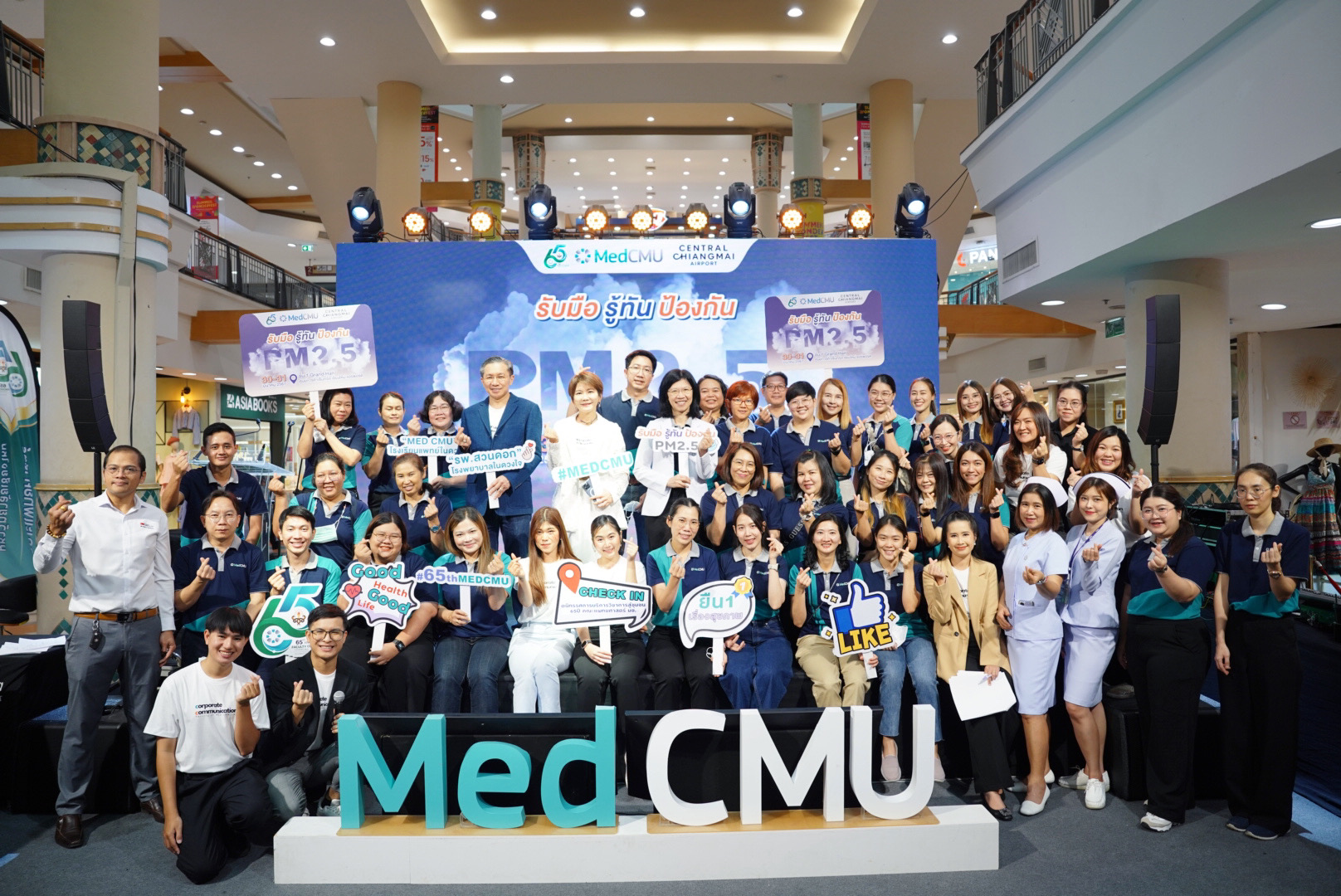 ผศ.พญ.พุดตาน วงศ์ตรีรัตนชัย รองคณบดีคณะแพทยศาสตร์ มช. พร้อมด้วย รศ.พญ.อรินทยา พรหมินธิกุล ผู้อำนวยการศูนย์ความเป็นเลิศทางการแพทย์ คณะแพทยศาสตร์ มช. และคุณธวัชชัย กฤติยาภิชาตกุล ที่ปรึกษาผู้ทรงคุณวุฒิ คณะแพทยศาสตร์ มช. พร้อมคณะ ร่วมในงานนิทรรศการบริการวิชาการสู่ชุมชน เนื่องในโอกาสครบรอบ 65 ปี คณะแพทยศาสตร์ มช. ในหัวข้อรับมือ รู้ทัน ป้องกัน PM2.5 เพื่อสร้างความตระหนักถึงมลภาวะทางอากาศโดยเฉพาะอย่างยิ่งฝุ่น PM2.5 ที่เป็นปัญหาที่เกิดขึ้นกับประชาชนเป็นประจําทุกปี