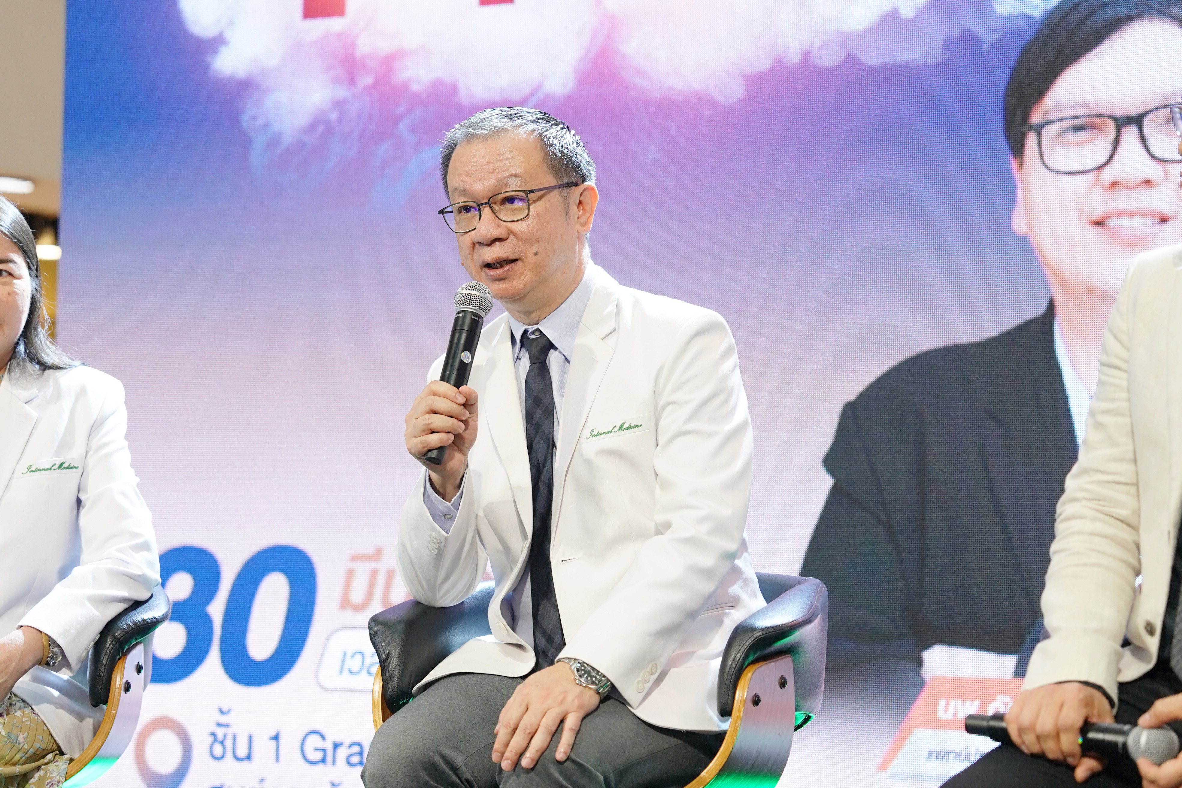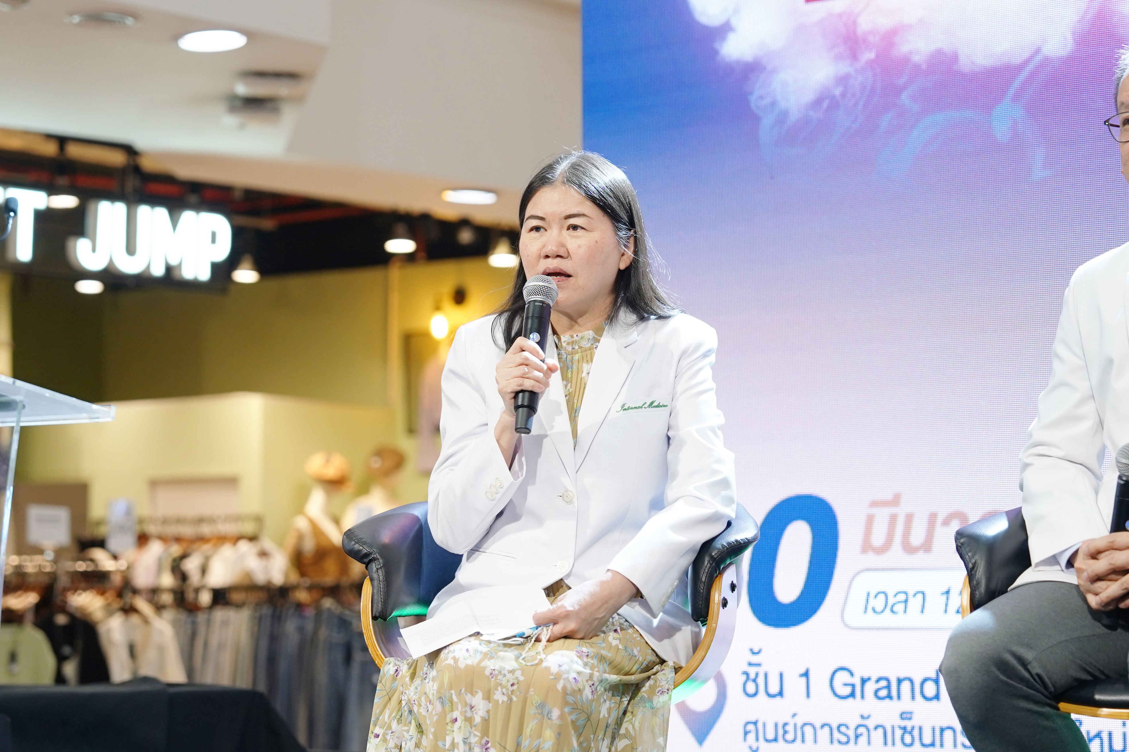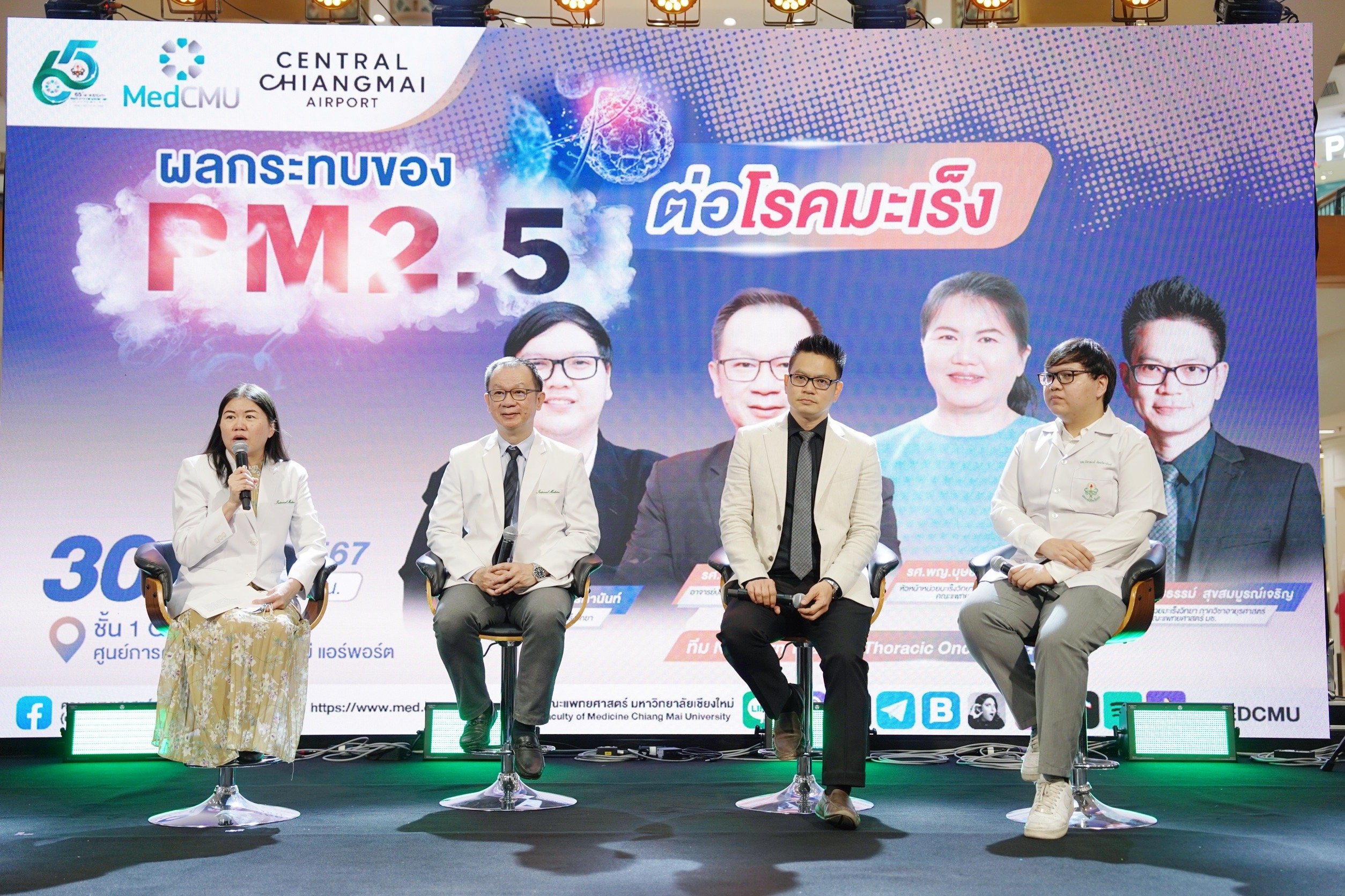 นอกจากนี้ได้จัดกิจกรรมการเสวนาให้ความรู้ เรื่อง “ผลของ PM2.5 ต่อโรคมะเร็ง” เวลา 12.30 -13.15 น. โดย รศ.พญ.บุษยามาส ชีวสกุลยง หัวหน้าหน่วยมะเร็งวิทยา ภาควิชาอายุรศาสตร์ คณะแพทยศาสตร์ มช.